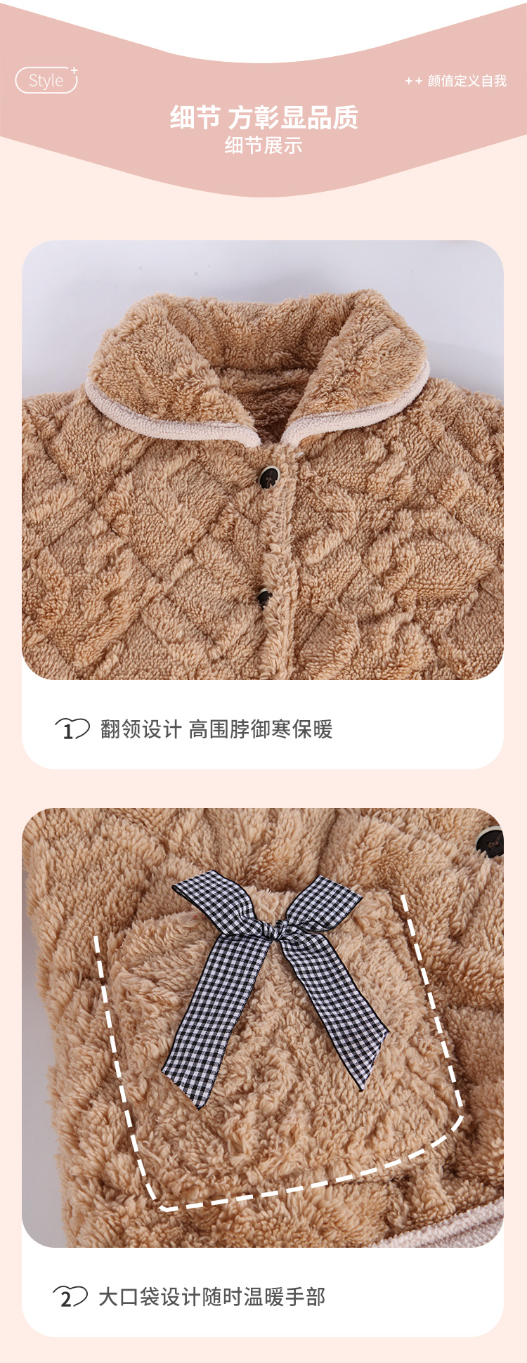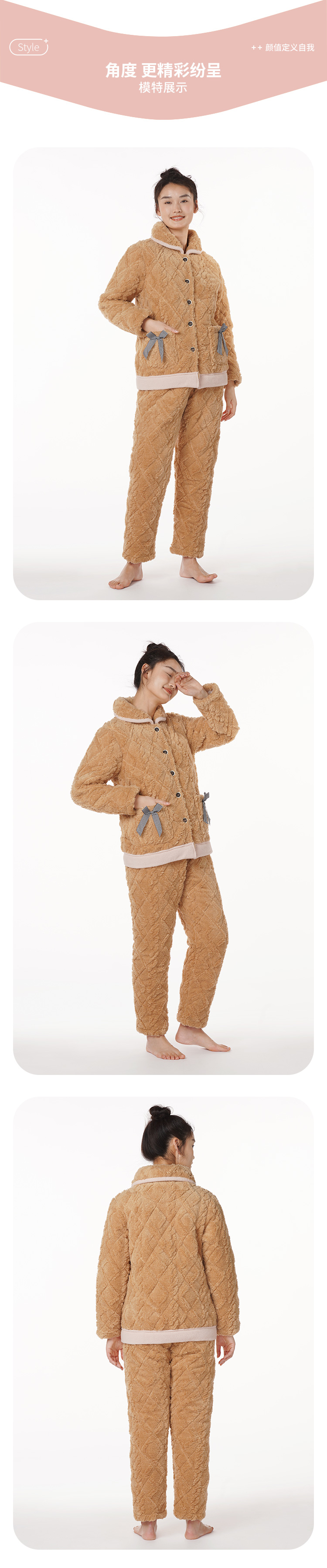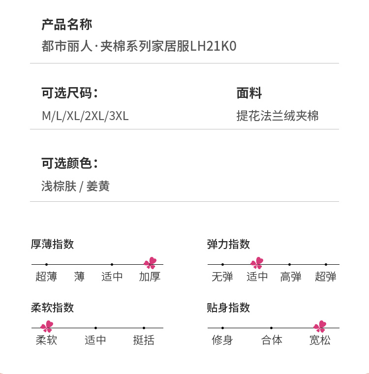 都市丽人舒适外出女士加厚夹棉套装提花法兰绒夹棉加厚家居服长袖睡衣LH21K0