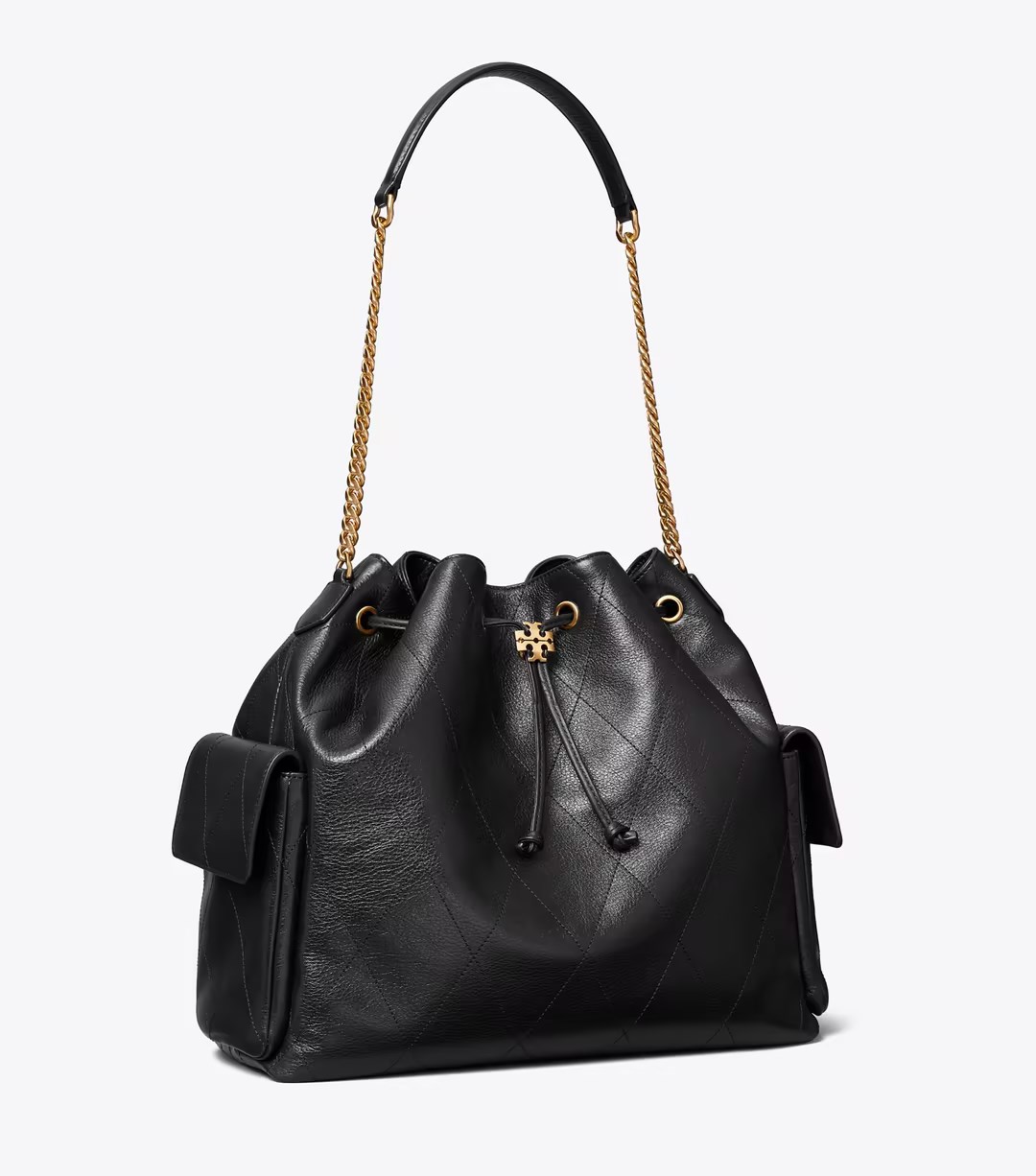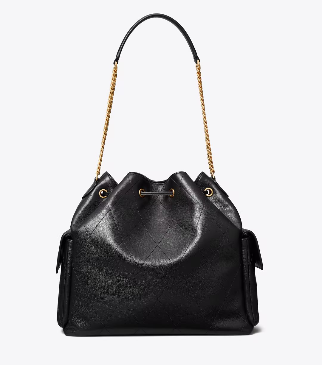 Charlie 大号绗缝抽绳肩背包,以全新造型重塑现代经典之作。柔软廓形交融利落线条,与光滑斜面饰件相得益彰。荔枝纹皮革材质包身,饰以同色调菱格纹绗缝,内外均设有口袋,方便有序收纳。链条背带搭配皮革护肩垫,赋予舒适触感。