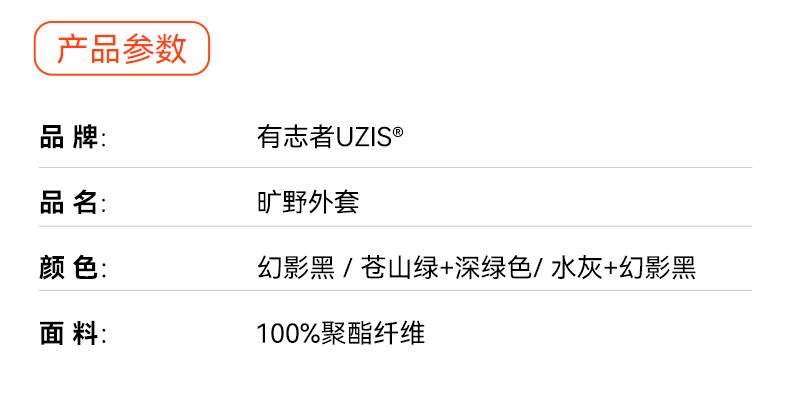 有志者UZIS秋冬新款运动外套男户外防风保暖三合一夹棉冲锋衣旷野
