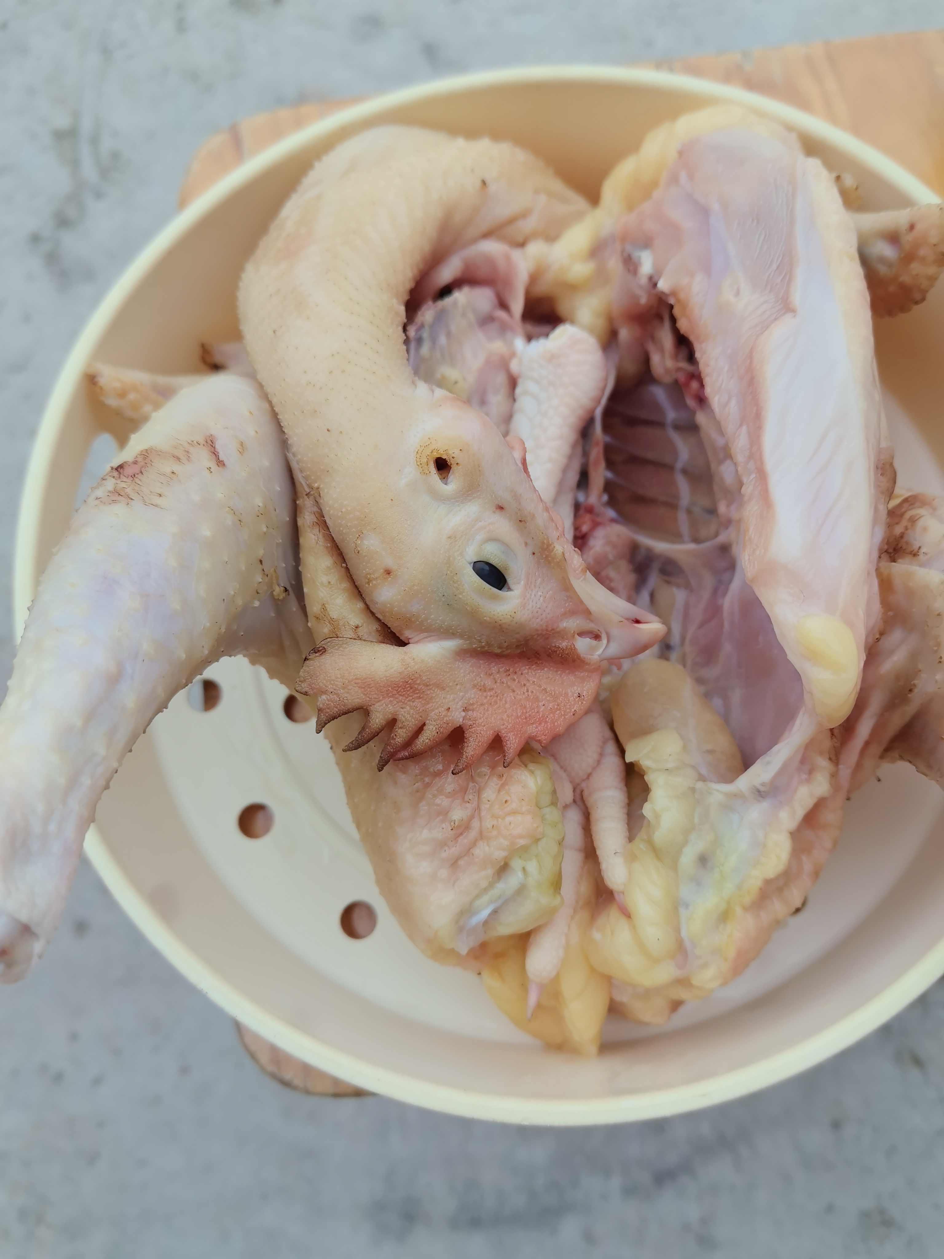 选用的是150天的母鸡,这个时期的母鸡,刚刚开始或者即将开始产蛋,是身体发育到最完美的时期:皮下脂肪增厚,逐渐开始有鸡肉的香味;但是鸡肉不柴,适合烹饪的方式多样。