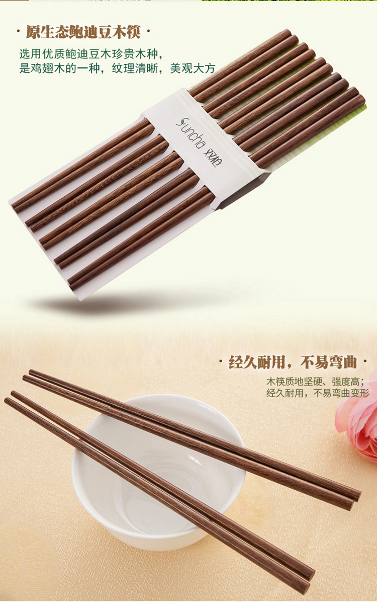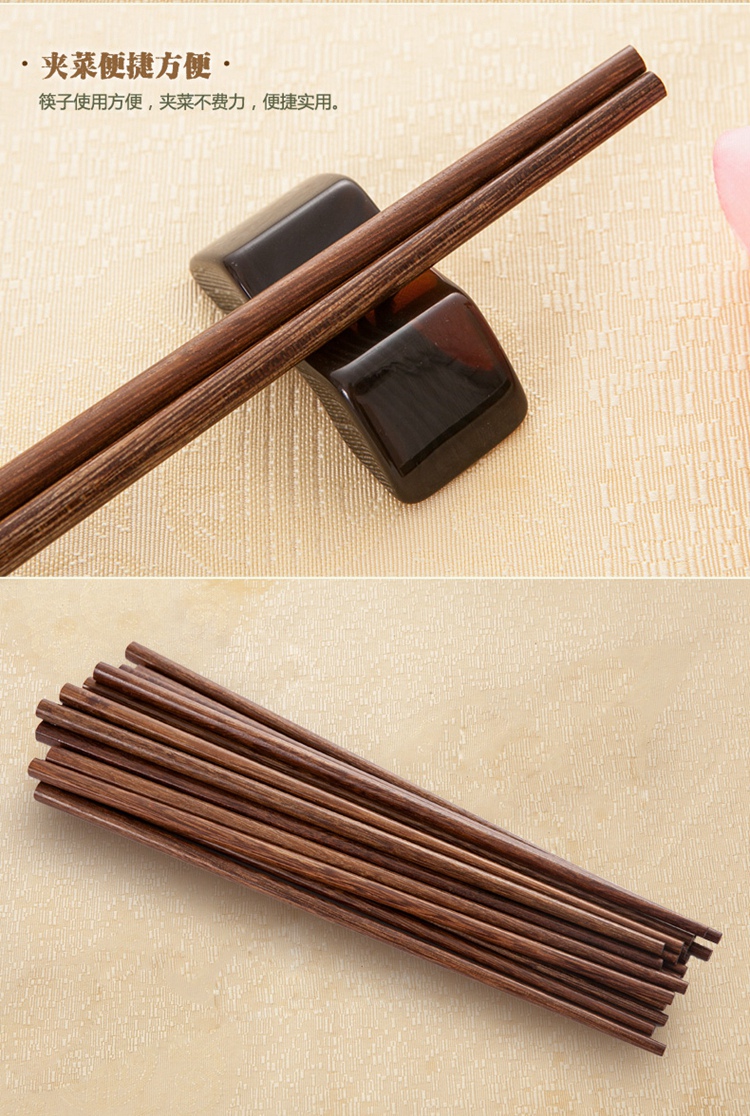 【自营】双枪鸡翅木筷子无漆无蜡日式酒店家用厨具餐具激光雕刻10双