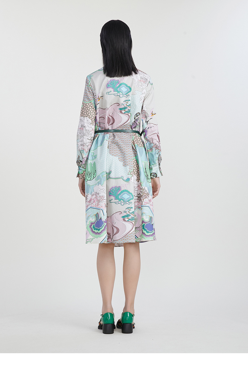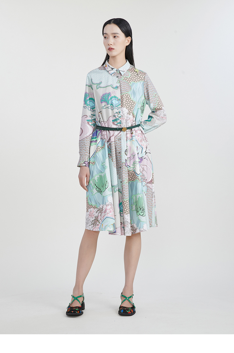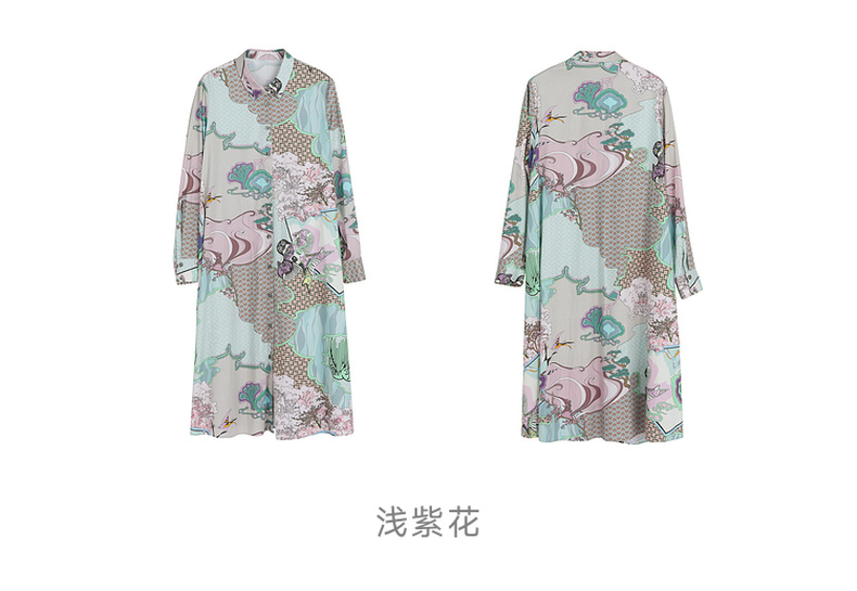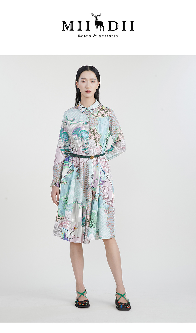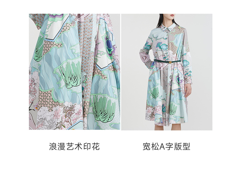 谜底主题花色连衣裙2023春季新款复古宽松A字型长裙长袖231ML0105