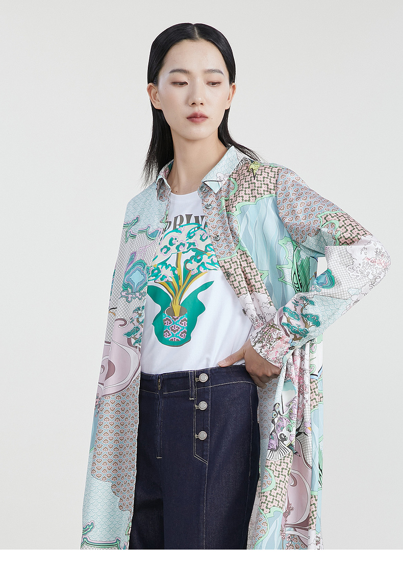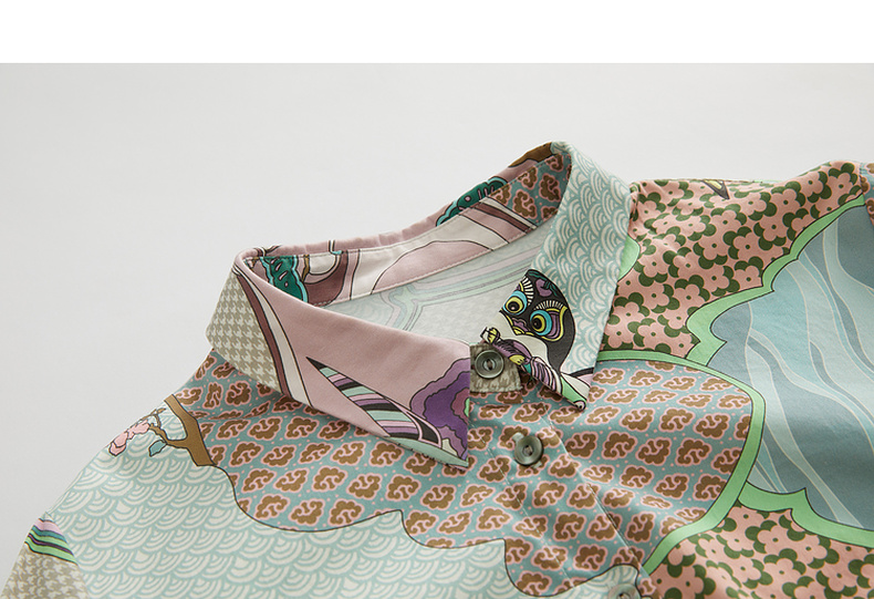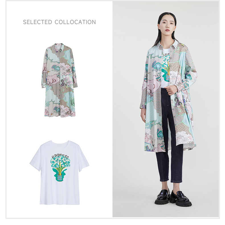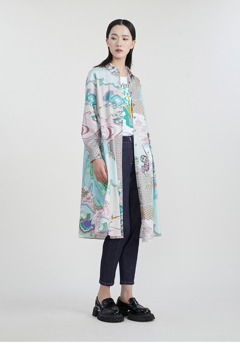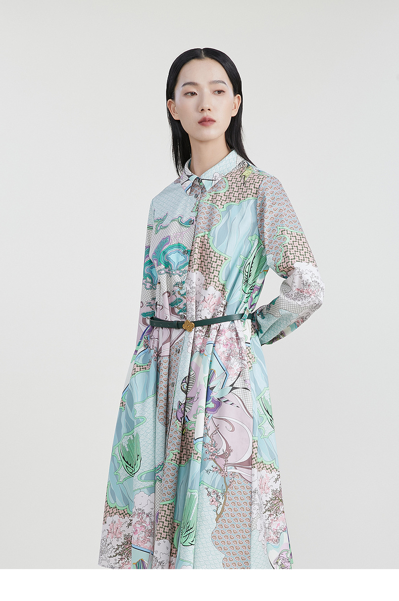 谜底主题花色连衣裙2023春季新款复古宽松A字型长裙长袖231ML0105