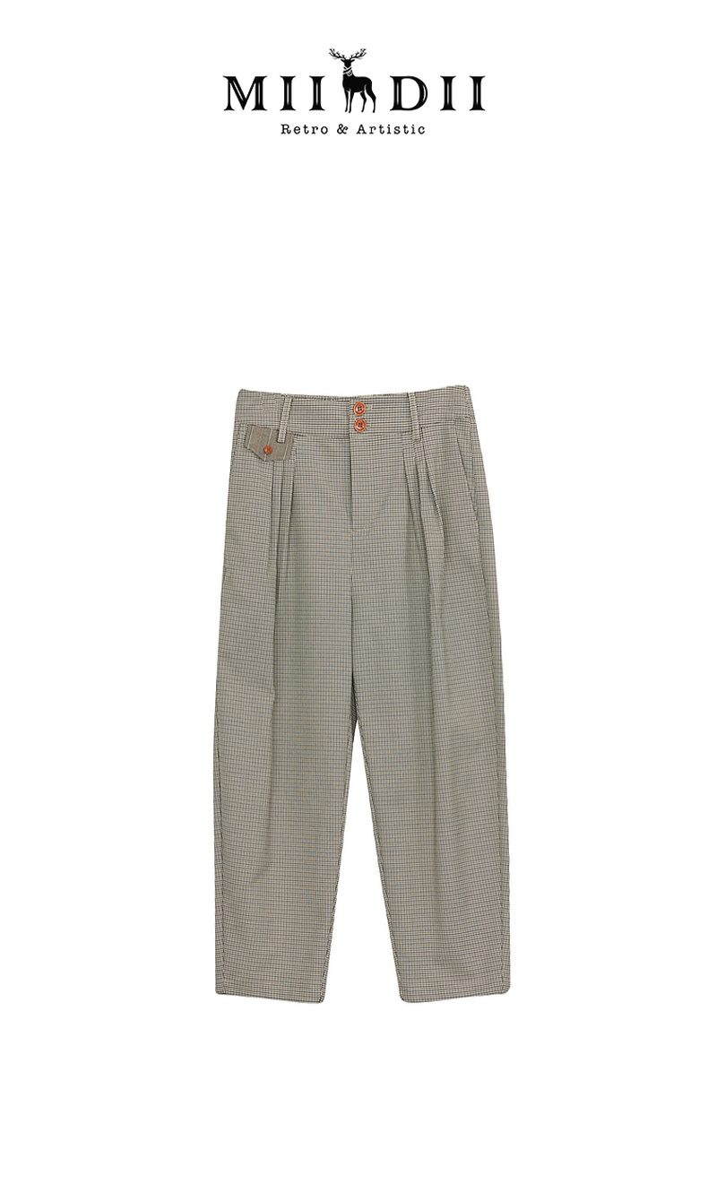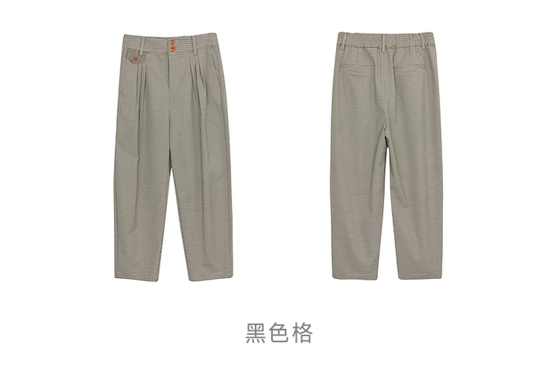 谜底格子萝卜裤女士2024秋季新品复古风高腰休闲九分裤243MK1166