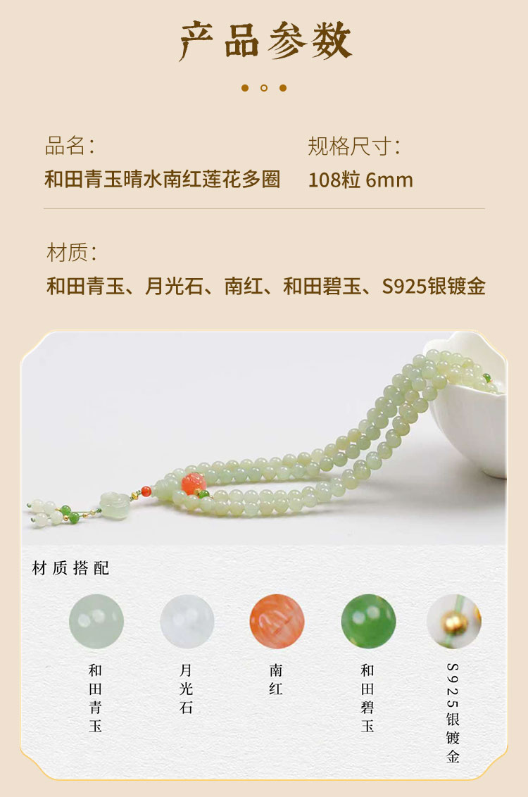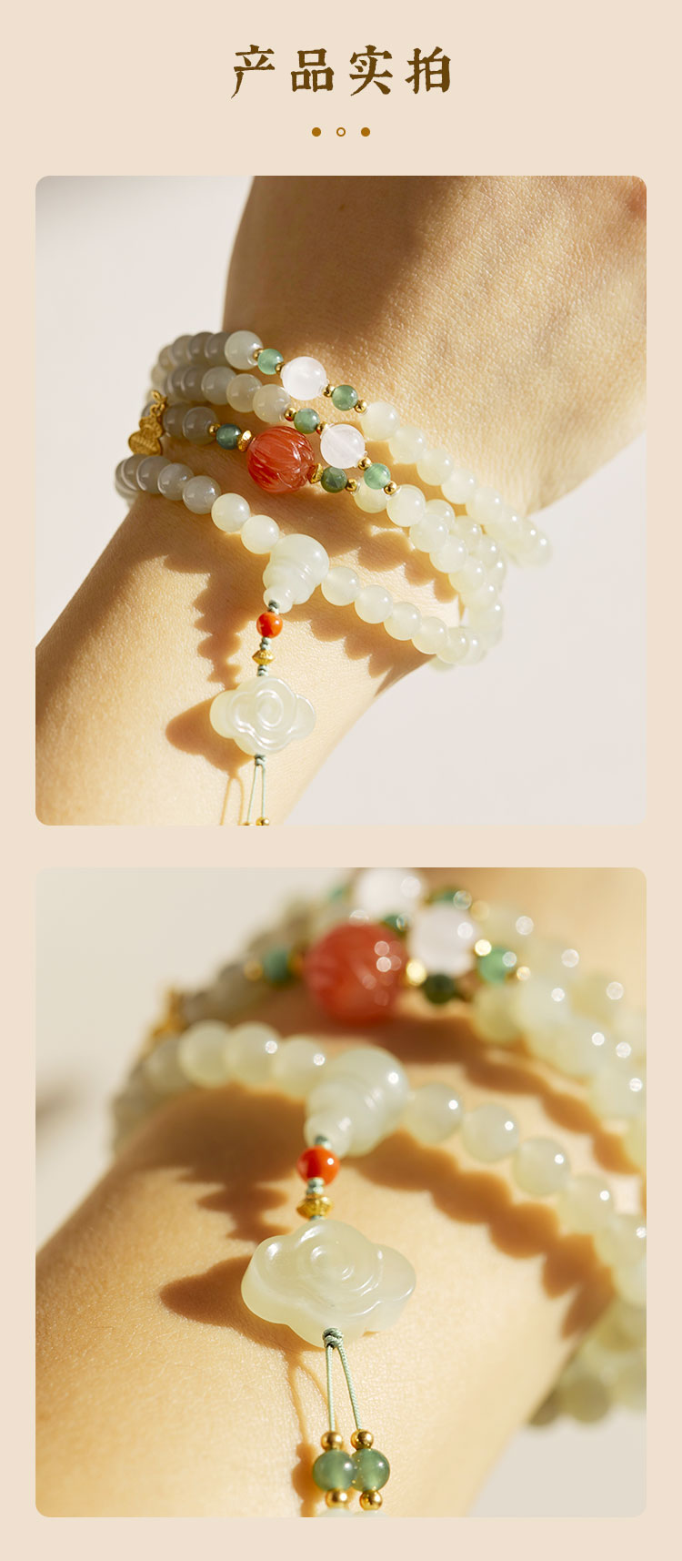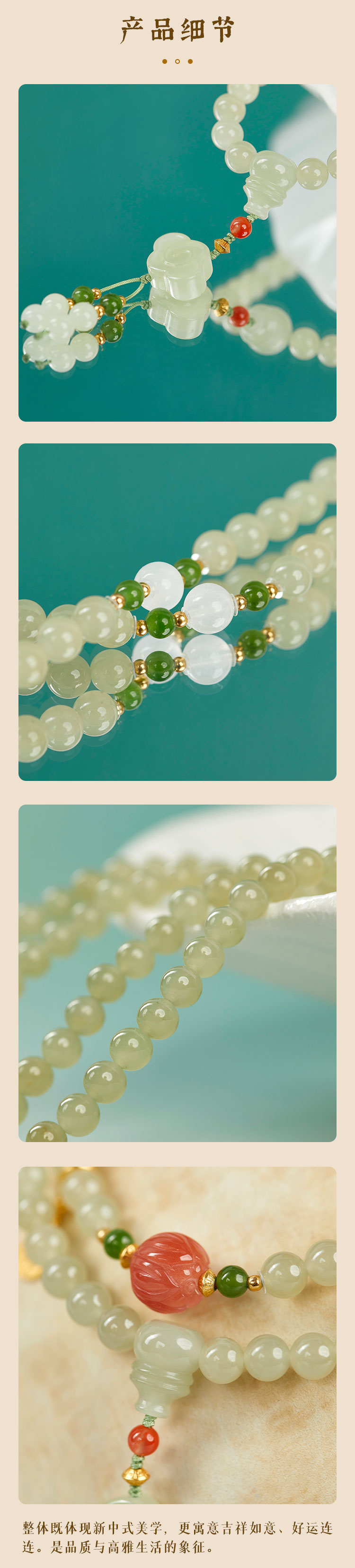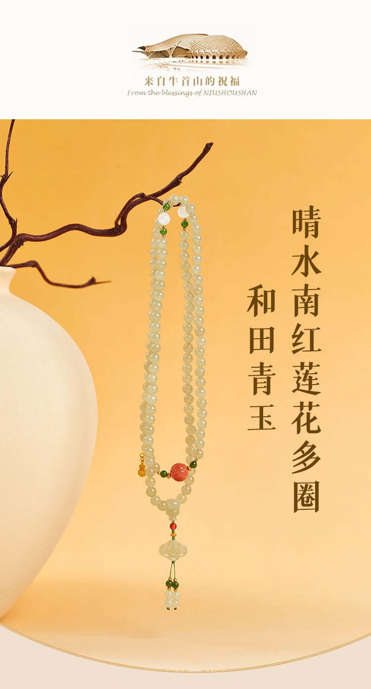 牛首山文创和田青玉晴水南红莲花多圈手串中式高颜值手链节日礼物