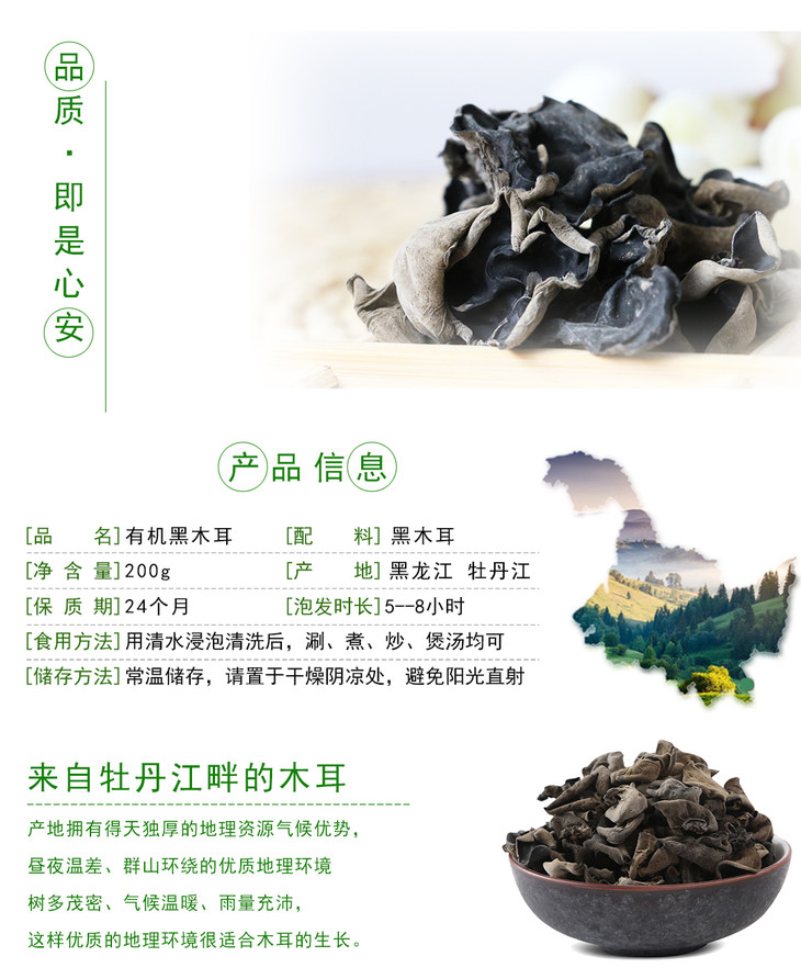 【悦意】有机黑木耳200g/袋 自然晾晒 肉质浑厚 富有弹性 口感筋道