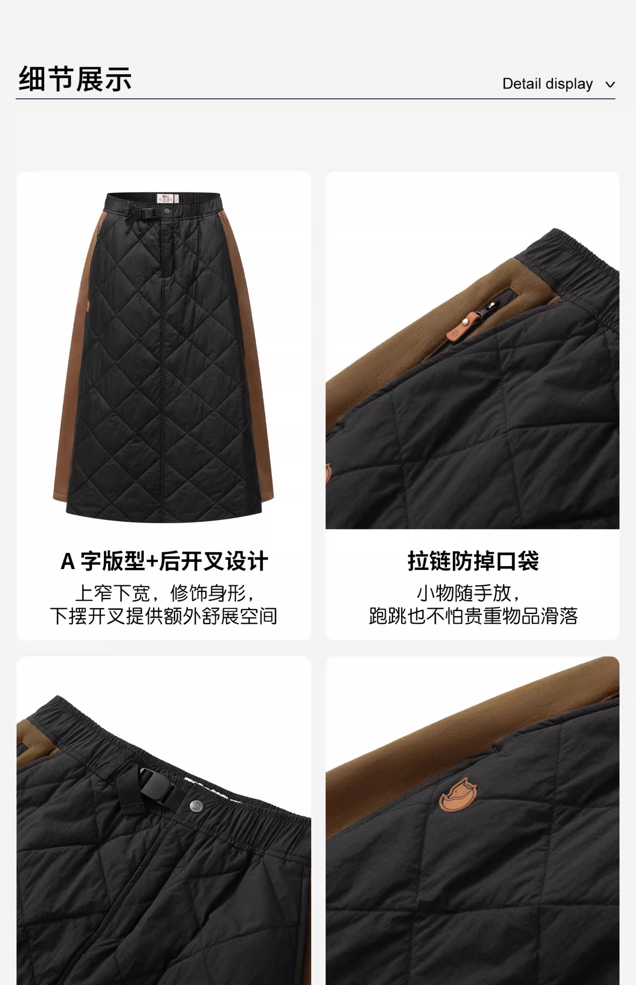北极狐 25秋冬菱格棉质半身裙 户外休闲保暖棉裙伞裙102522060