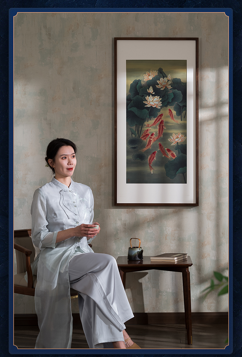 铜师傅 手工錾刻 铜雕画《九鱼呈祥》客厅玄关沙发背景墙装饰画