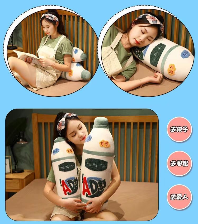 【享受温暖时光!长短款抱枕】娃哈哈长条抱枕,AD钙奶靠枕,毛绒玩具床上睡觉玩偶,女生可爱床头靠垫,学生宿舍居家布艺床上用品 饮料创意礼物