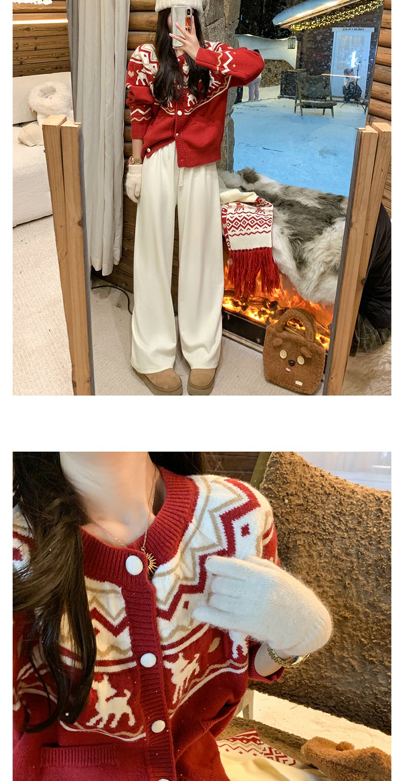 <曾小咸推荐>现货秒杀 !微信超特价!红色提花系扣毛衣 日常199.99/件 立减110 秒杀89.99/件!!