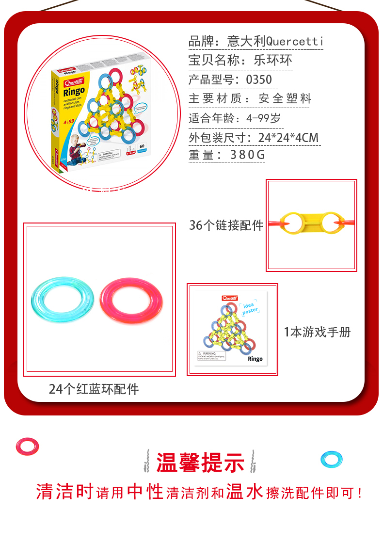 Quercetti启迪 构建系列 乐环环 Q0350 4+岁 意大利