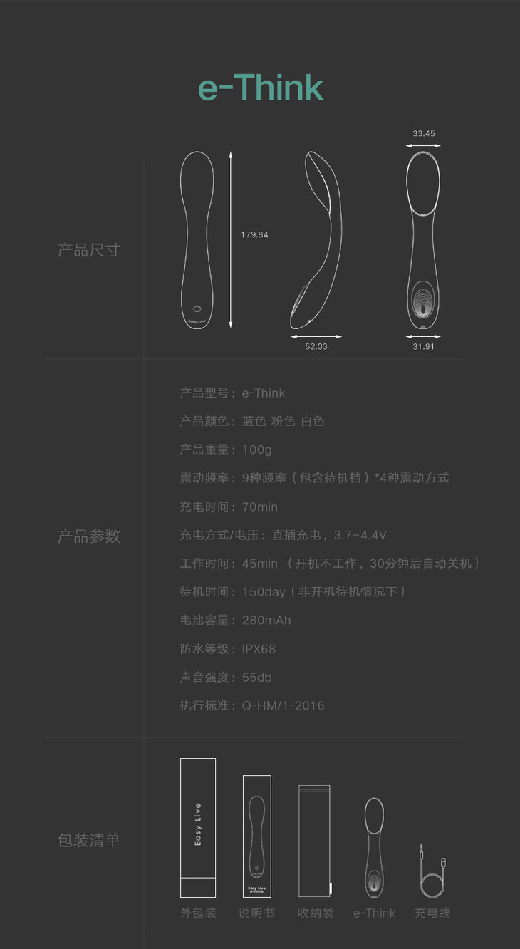 易港e-Think按摩震动棒 女用弯曲自用棒普通+智能APP版