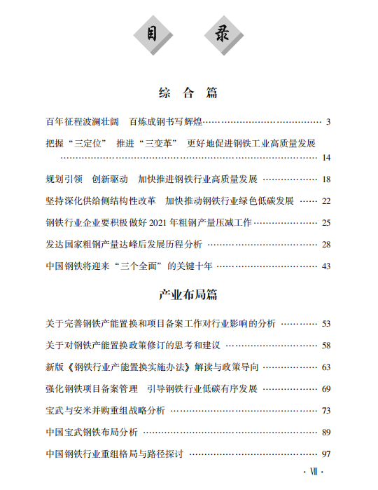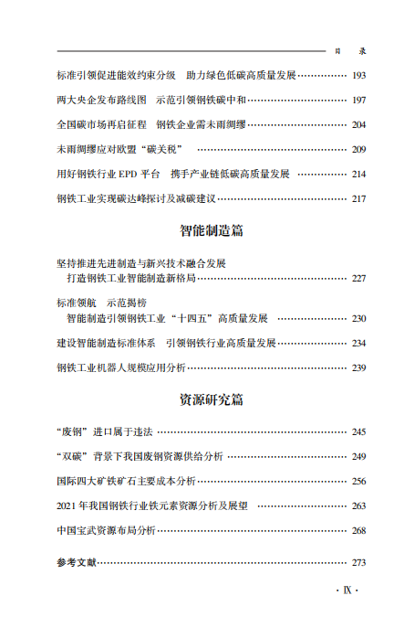 本书通过回顾和分析国内外钢铁产业结构调整、转型升级的历程,重点针对产能置换、产量调控、兼并重组、市场分析、标准引领、绿色低碳、智能制造和资源保障等方面进行了分析,探索以标准为引领,以绿色低碳、智能制造为关键抓手,以兼并重组为重要路径的钢铁产业新格局,持续推进钢铁工业高质量发展。全书分为7个篇章,共44篇文章,对行业重大课题、热点问题、发展难题分析客观务实,研判科学前瞻,具有重要的参考价值。