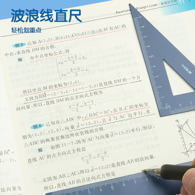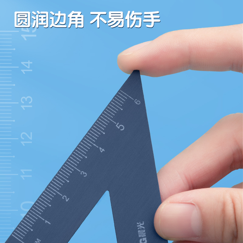 晨光定制金属套尺学生铝合金尺子三角尺小学生套装多功能三角板量角器带波浪线四件套15cm尺