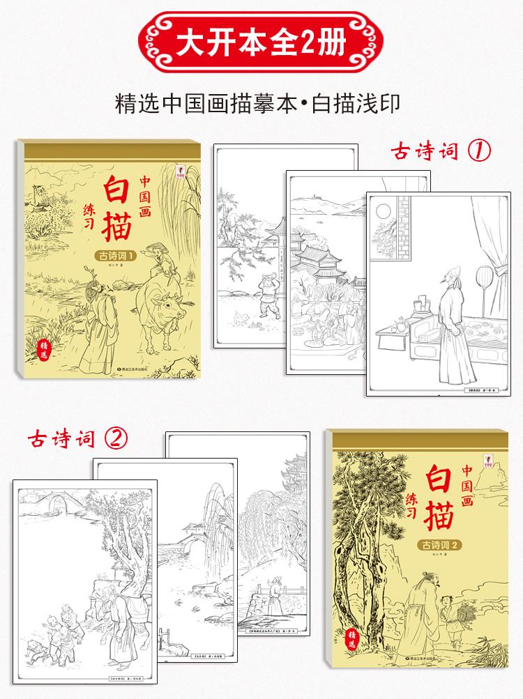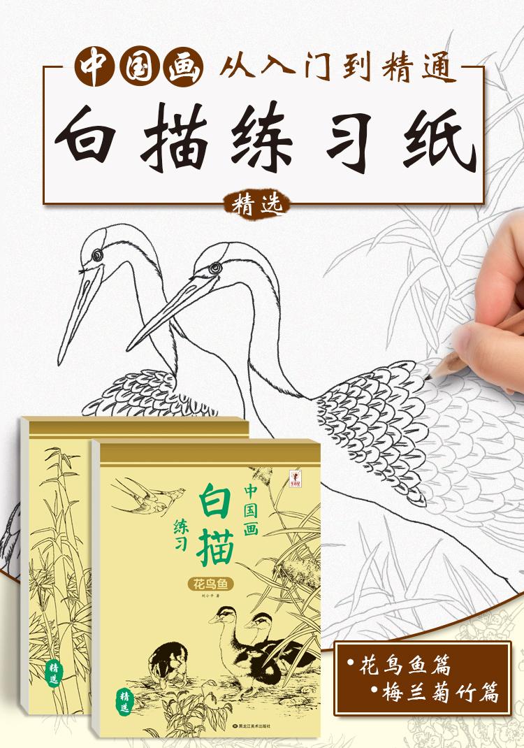 【福利】中国画白描全套6册白描动物花卉人物控笔临摹画册绘画国画山水画临摹描摹