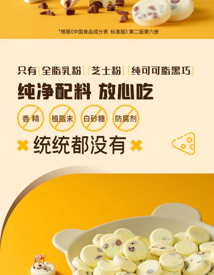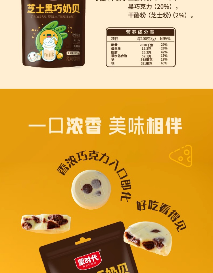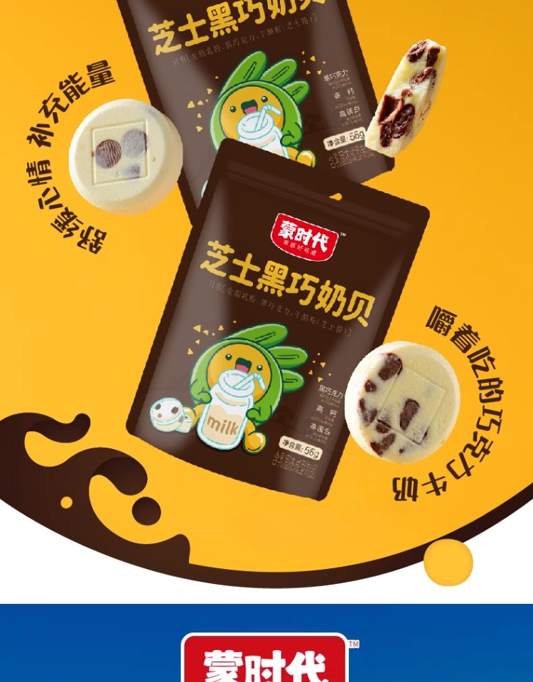 蒙时代巧克力奶片 高钙芝士添加干酪可可脂 巧克力奶片56g袋装