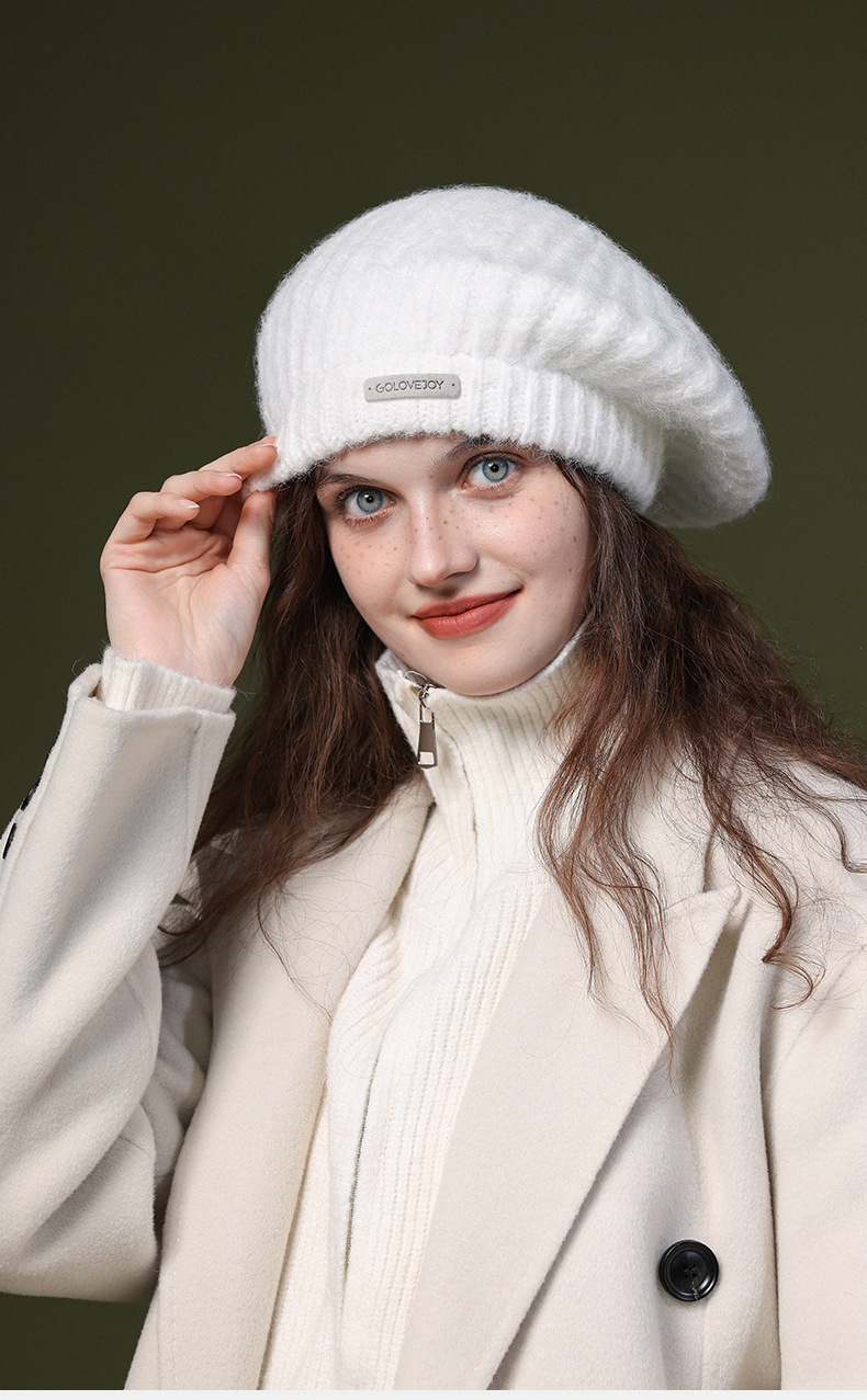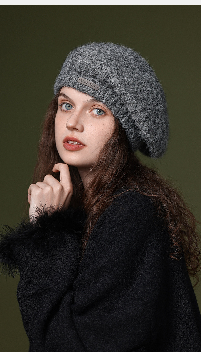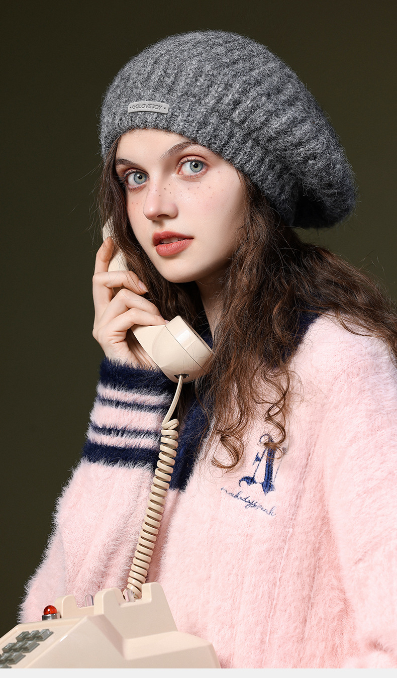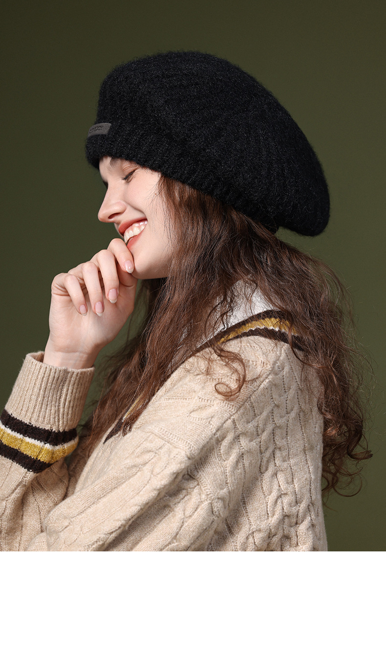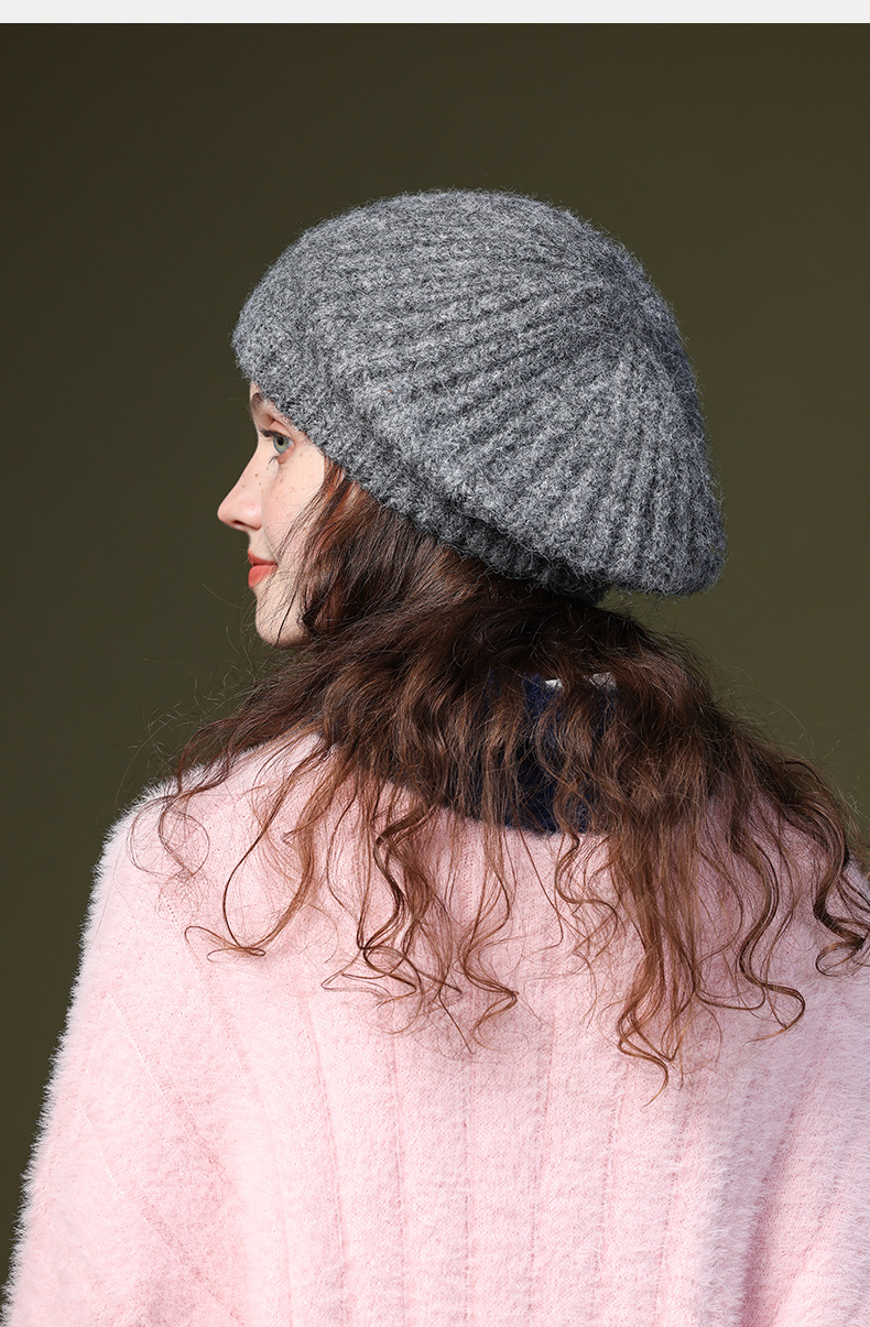 秋冬季新款羊毛贝雷帽复古文艺画家帽防风保暖简约大头围针织帽子