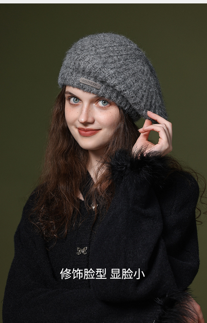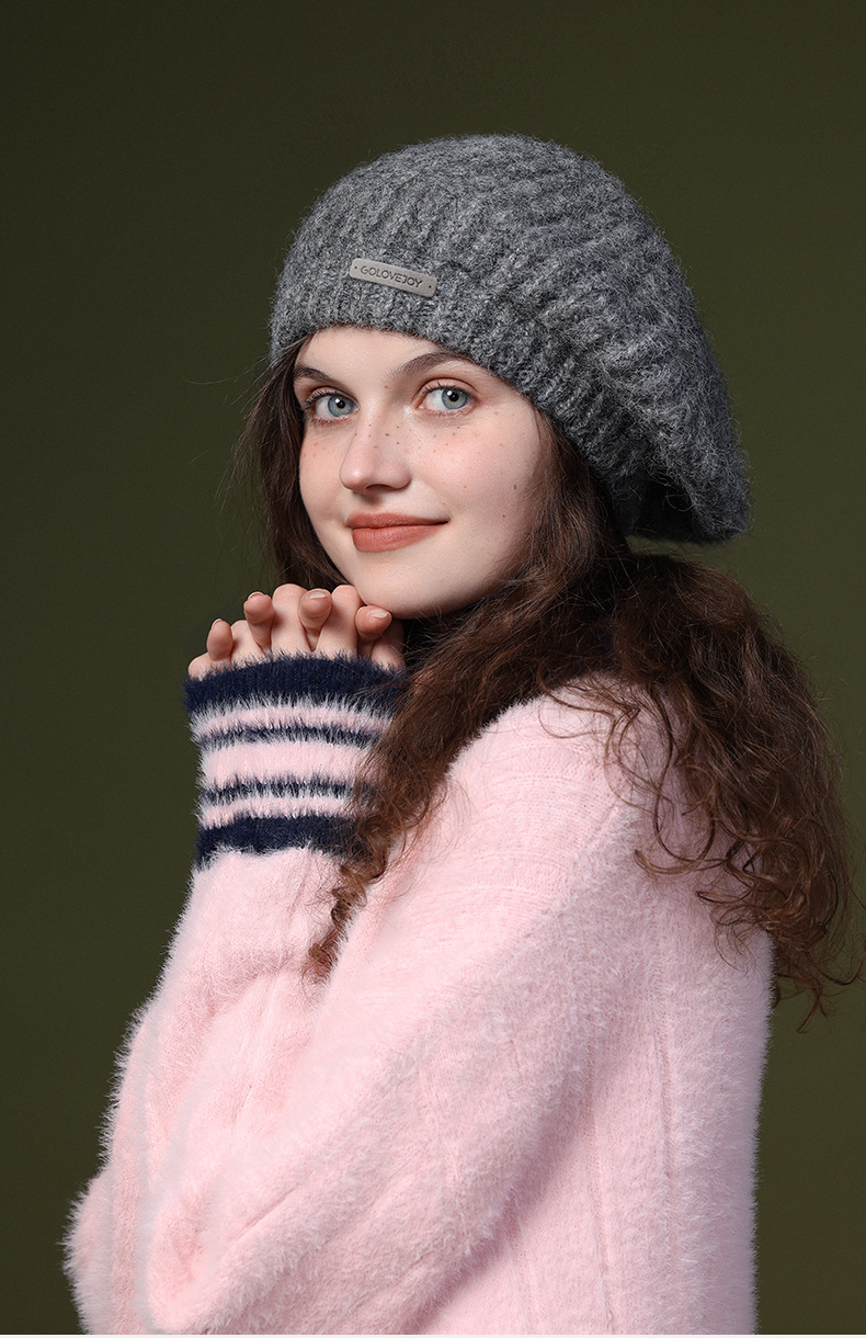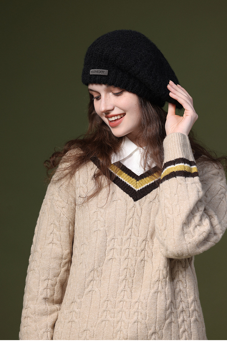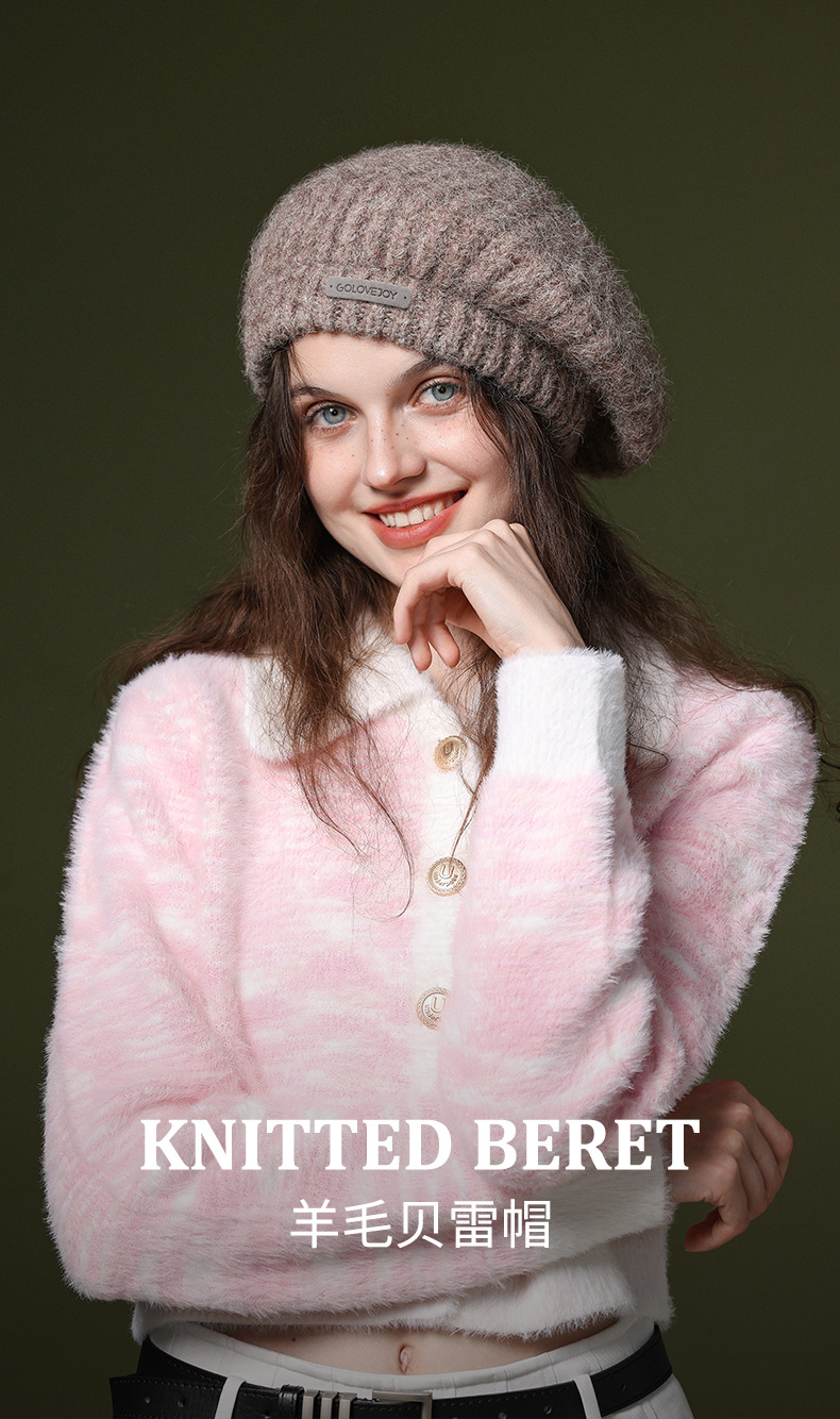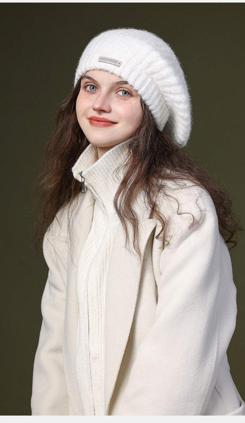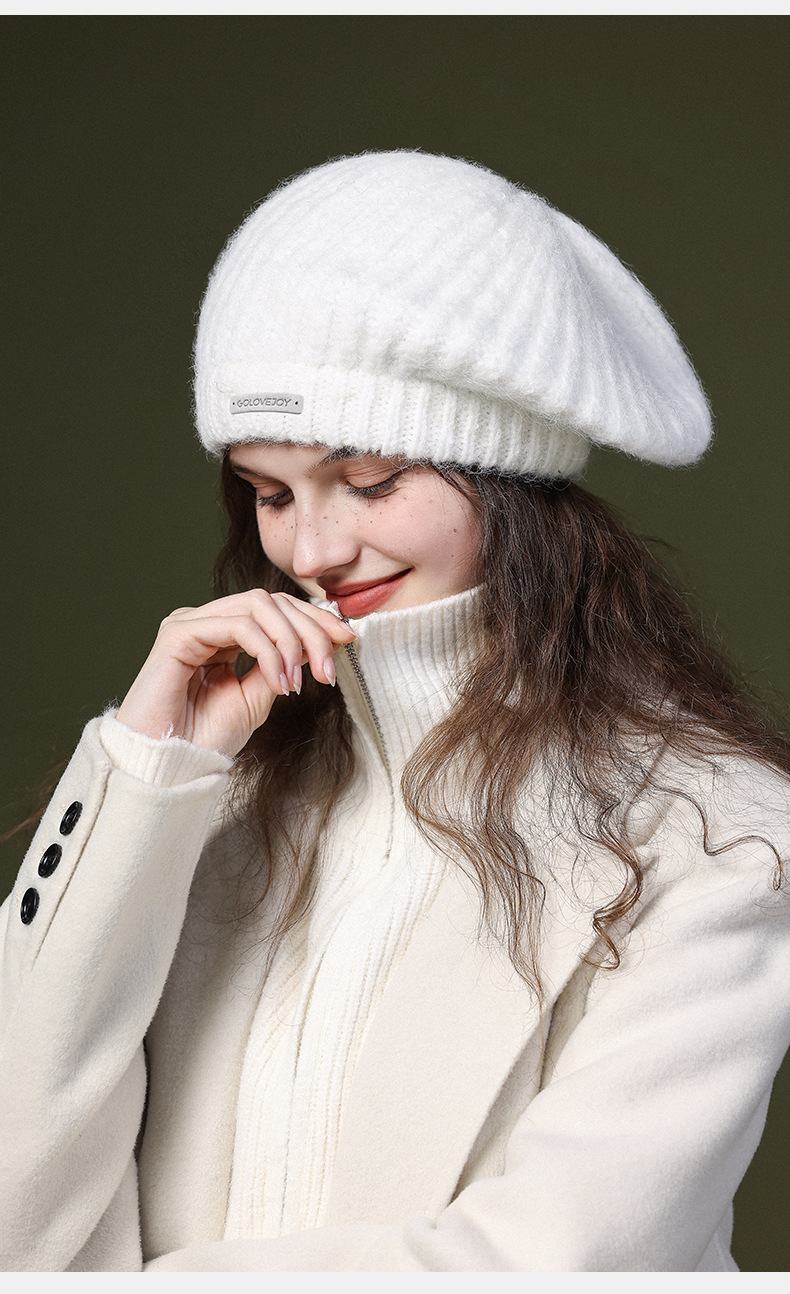 秋冬季新款羊毛贝雷帽复古文艺画家帽防风保暖简约大头围针织帽子