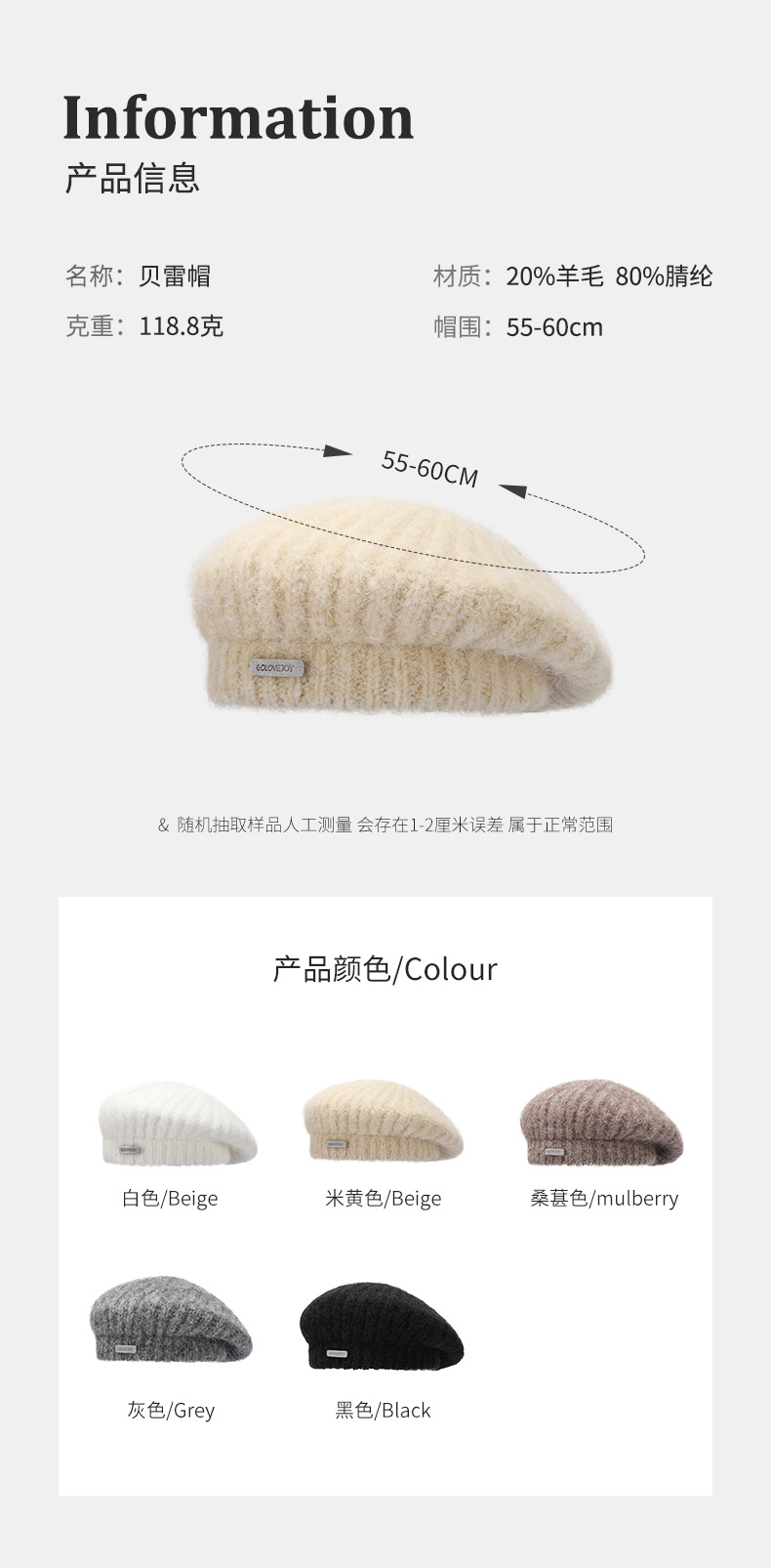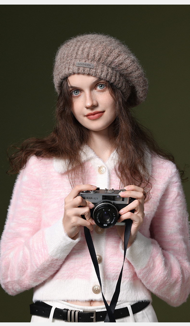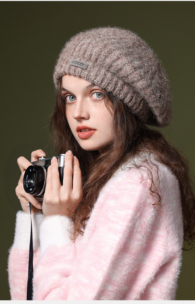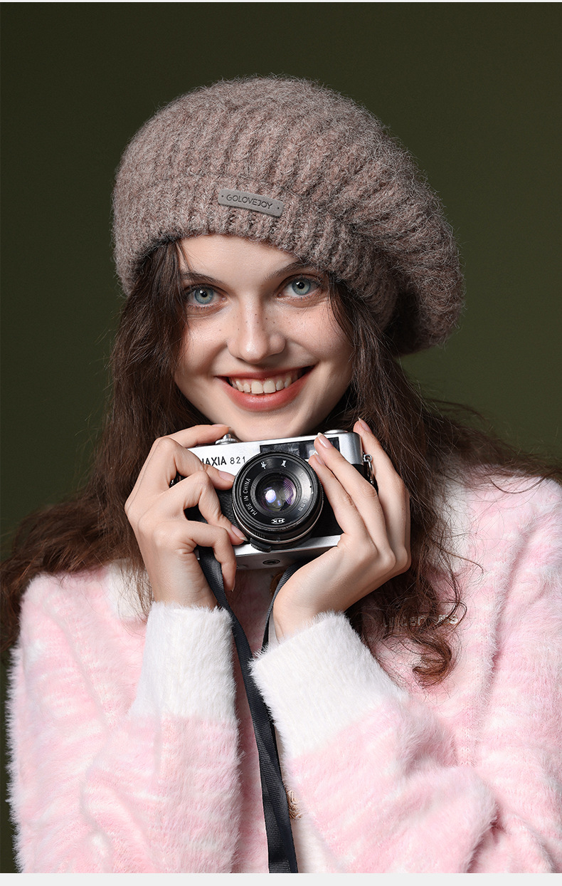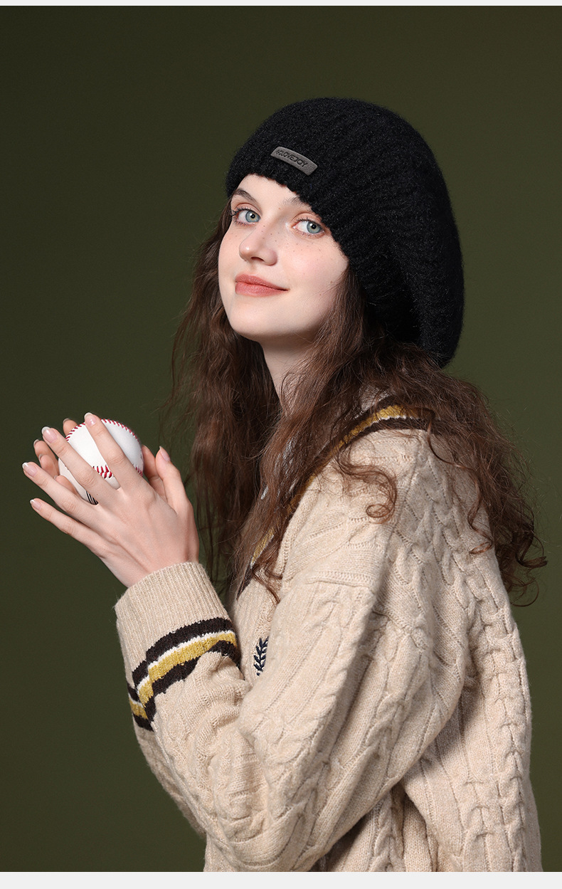 秋冬季新款羊毛贝雷帽复古文艺画家帽防风保暖简约大头围针织帽子