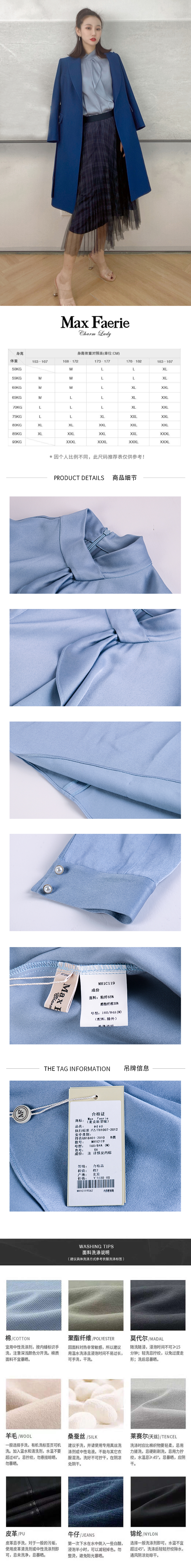 麦克斯菲瑞气质优雅质感蓝色衬衫 mh1c119