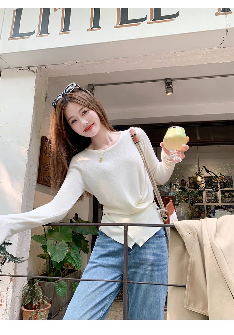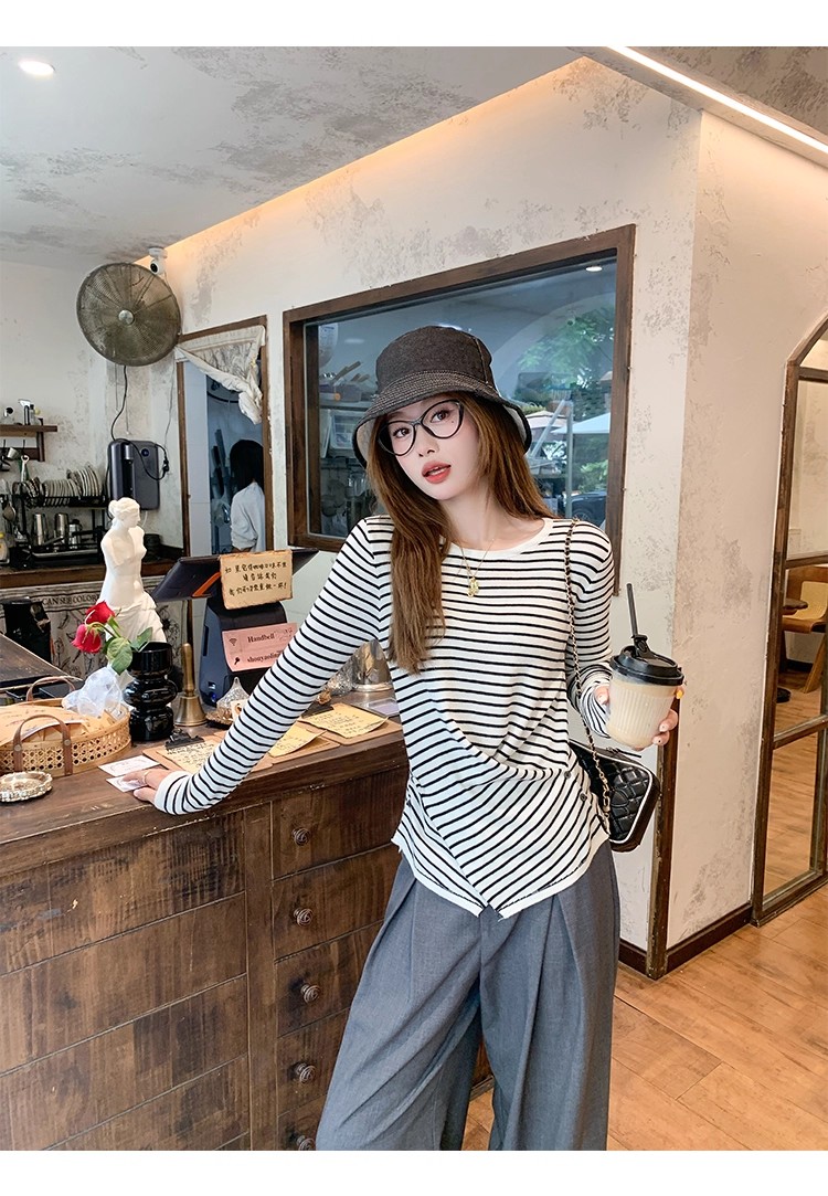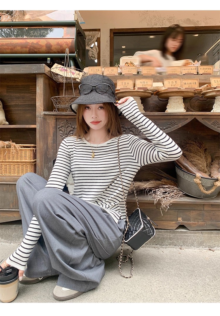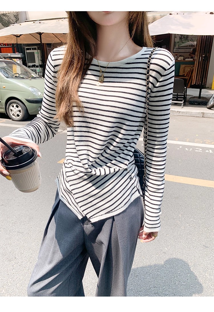 <曾小咸推荐>现货秒杀!微信超特价!韩系简约侧扣设计感条纹针织衫 日常119.99 立减60 秒杀59.99!