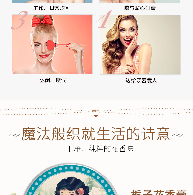 上海女人夜来香滋润雪花膏80g夜玫瑰牡丹茉莉桂花栀子花白兰花