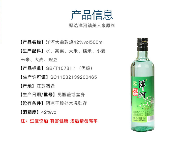 洋河敦煌大曲绿敦煌42度500ml浓香型白酒