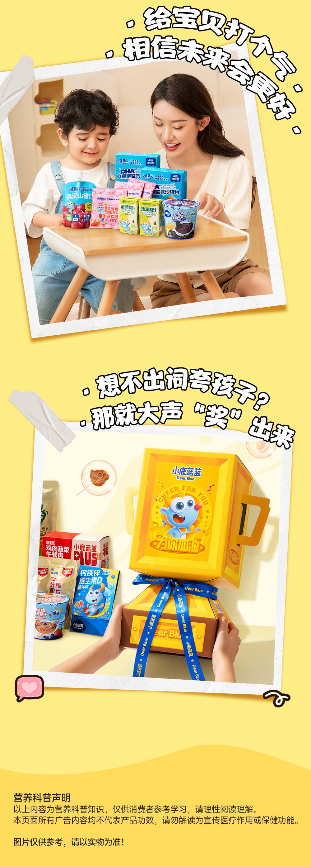 小鹿蓝蓝始终致力于为主人提供更优质、高性价比的产品、服务和体验,共同打造婴童零食生态圈,提升母婴行业的国货自信,守护和陪伴新一代儿童健康、快乐地成长。