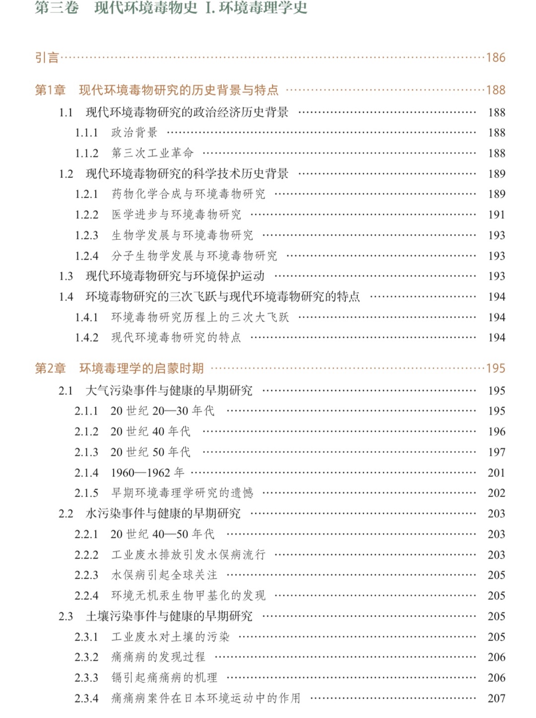 本书除附录共七卷:第一卷记述古代对环境天然毒物的研究史;第二卷介绍近代对环境毒物的研究史;第三、第四卷论述现代环境毒物史,介绍环境毒物研究的现代历史背景,首次详细论述环境毒理学和生态毒理学从起源、诞生到成熟的发展全过程以及经验教训和研究成果;第五卷详细介绍大气颗粒物、二氧化硫、汞、铅、砷、农药、环境诱变剂、环境内分泌干扰物及持久性有机污染物等环境毒物的研究及其应用起源、历代成果、毒性危害和防治方法;第六卷论述环境生物毒物——致病微生物引发的瘟疫流行与防治的历史进程及其科研成就;第七卷介绍在环境毒物研究上历代名人的生平、成就及其学术趣事。