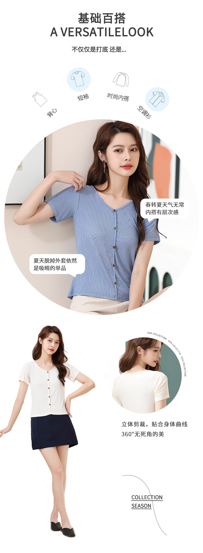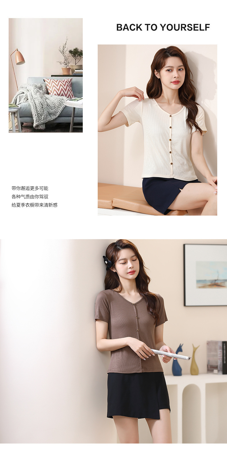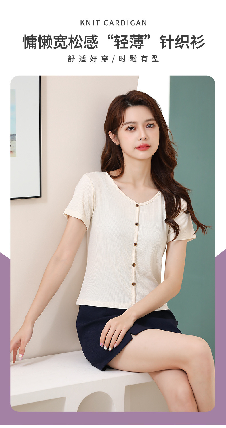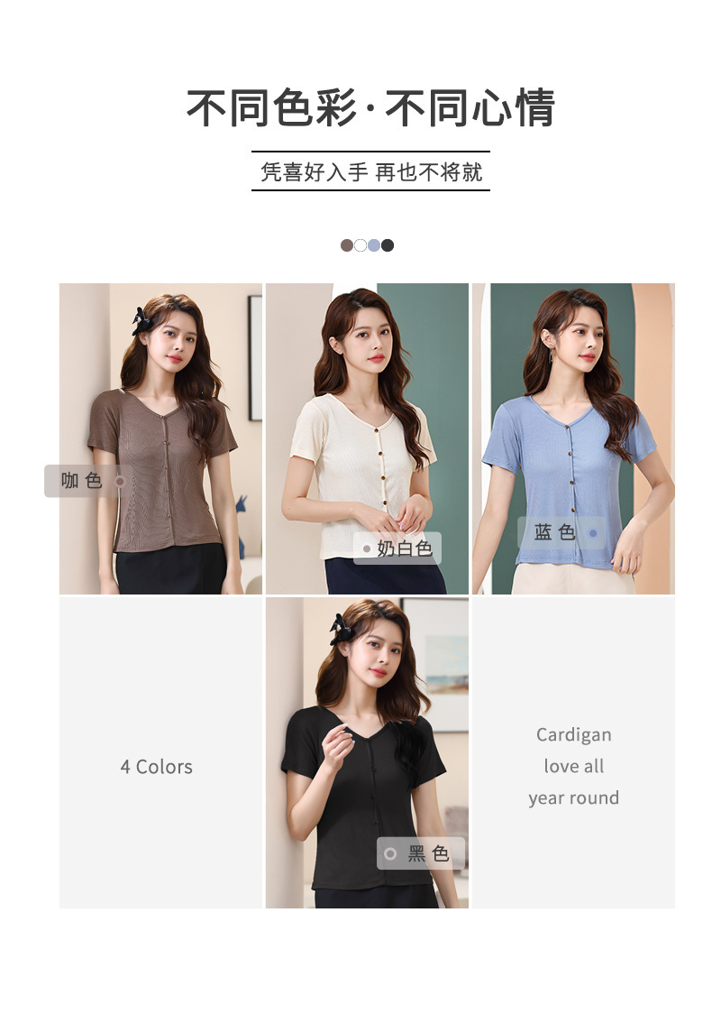 【4色可选,第二件免单!】夏日清新,简约不失精致,钉扣V字领设计别具匠心,让你更加迷人动人。棉月2023夏季新款短袖T恤女,轻松穿出独特的魅力。