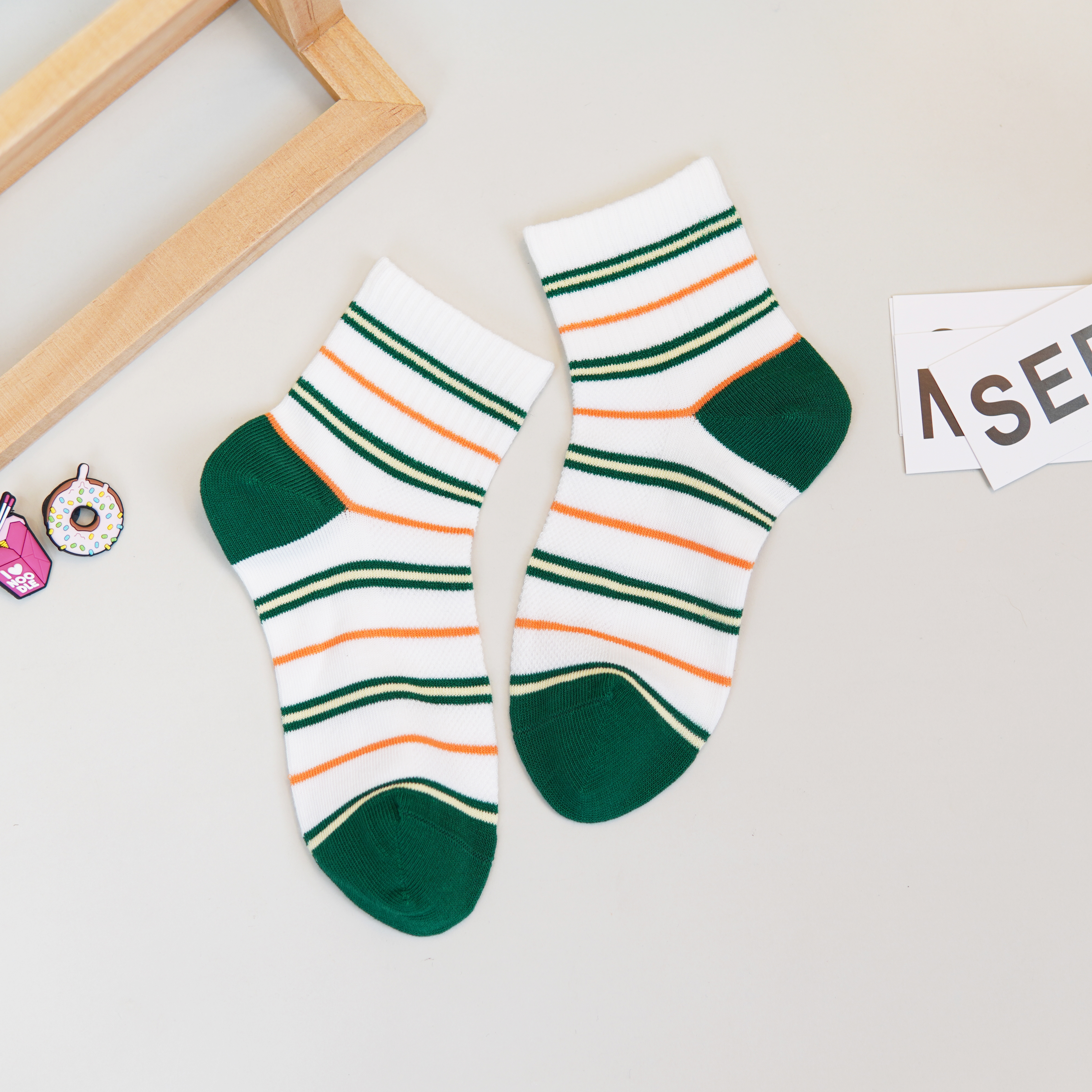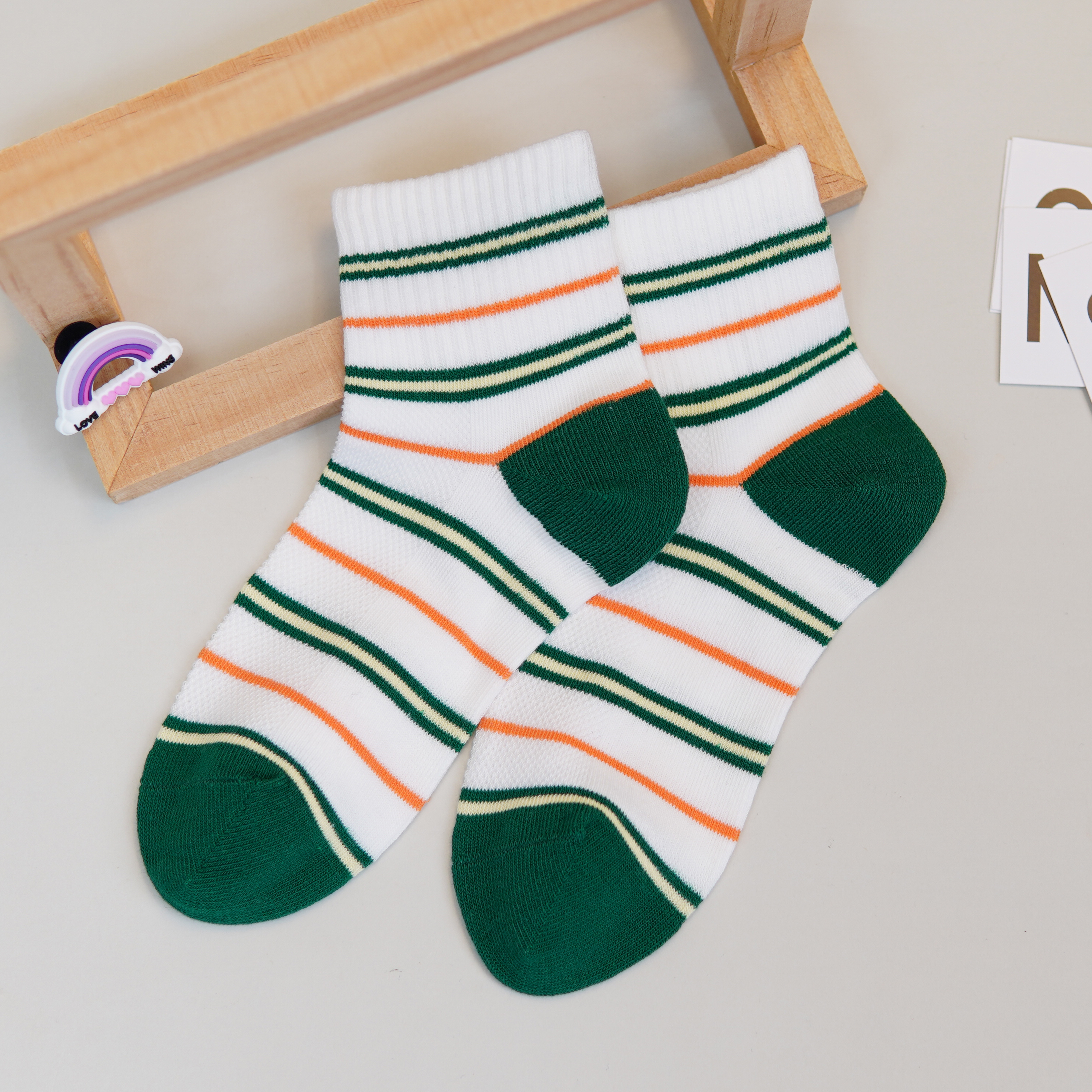 【6双6折】【5-7岁】中童夏季网面薄袜子条纹时尚童袜中筒袜子【2双装 2513208】