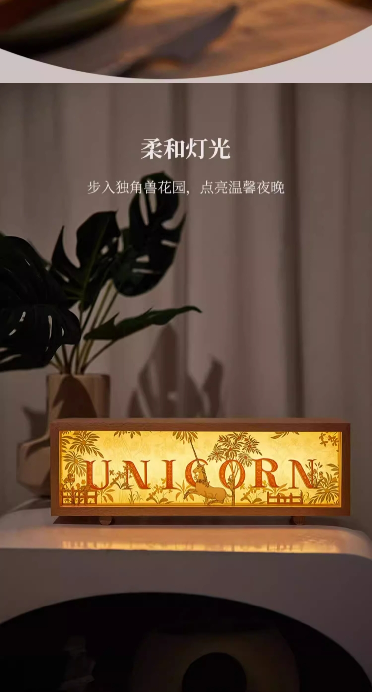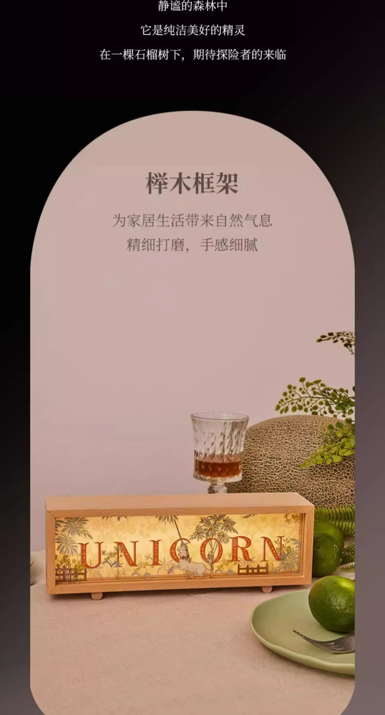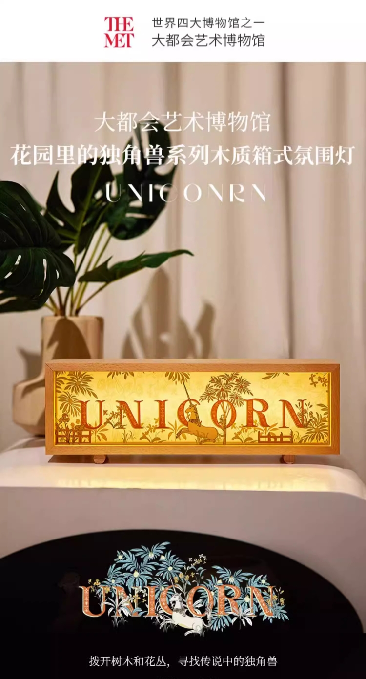 大都会艺术博物馆花园里的独角兽系列 木质箱式氛围灯伴睡灯礼盒摆件