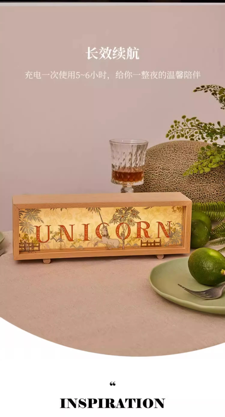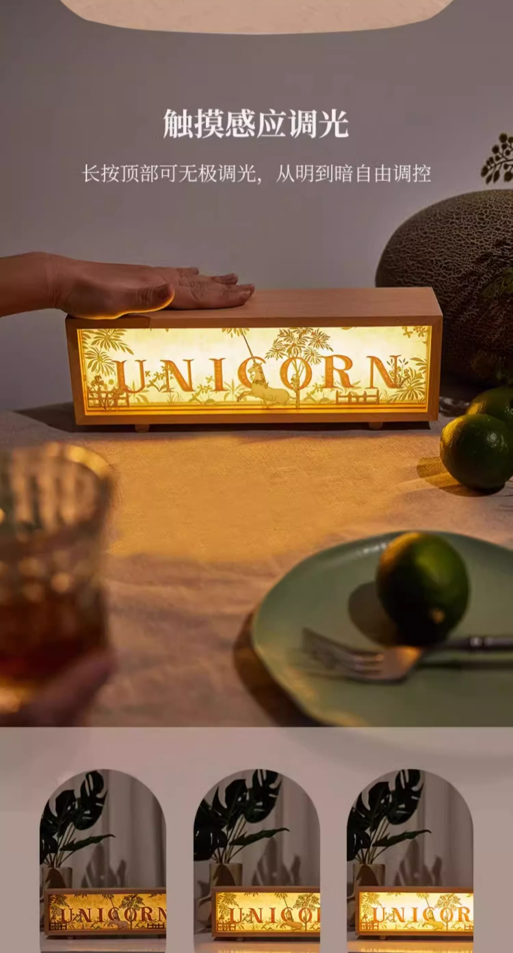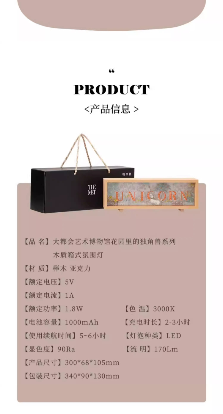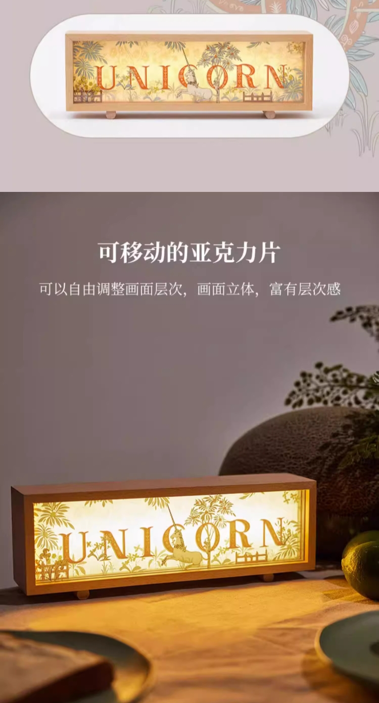 大都会艺术博物馆花园里的独角兽系列 木质箱式氛围灯伴睡灯礼盒摆件