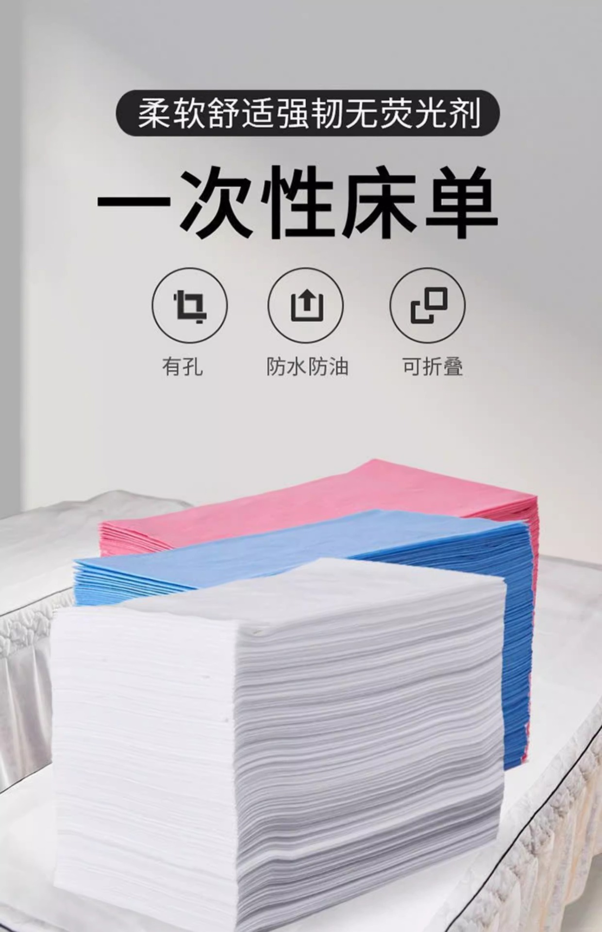 美容院一次性床单加厚防水防油按摩床专用带洞透气无纺布带孔床单