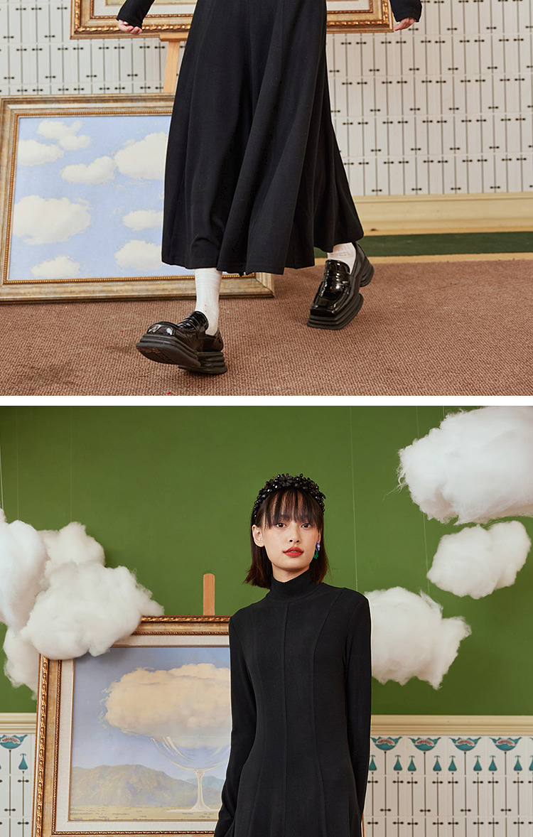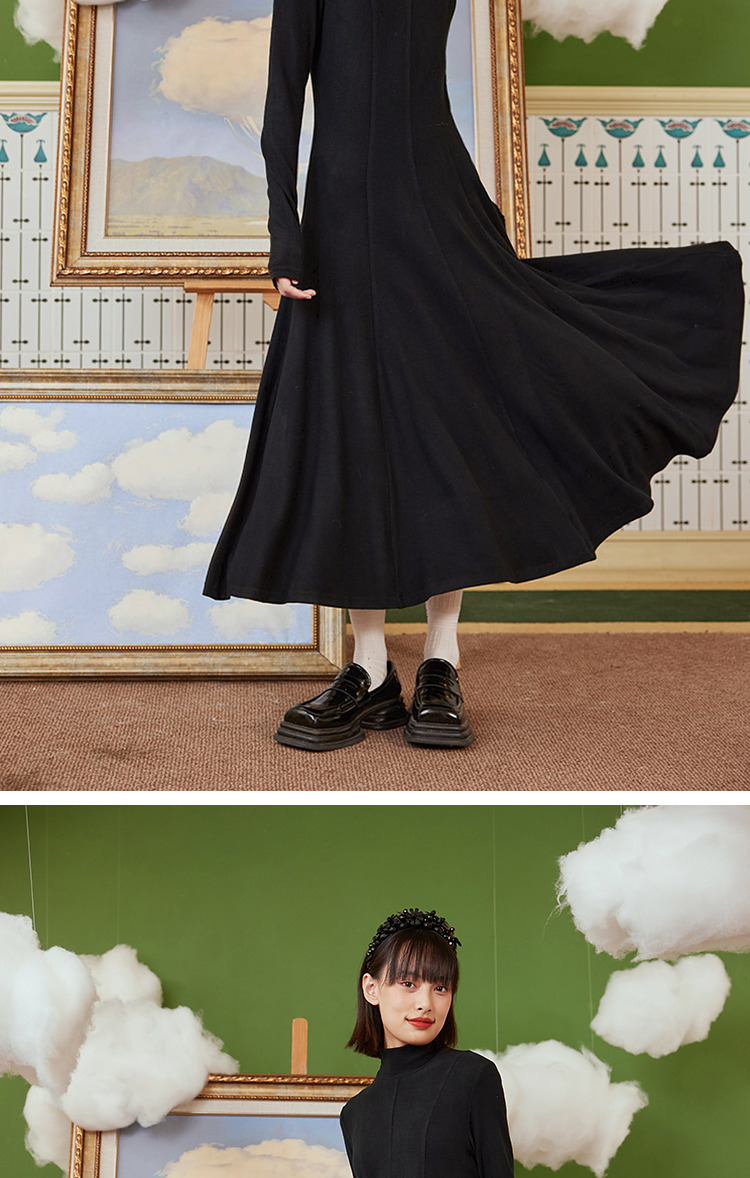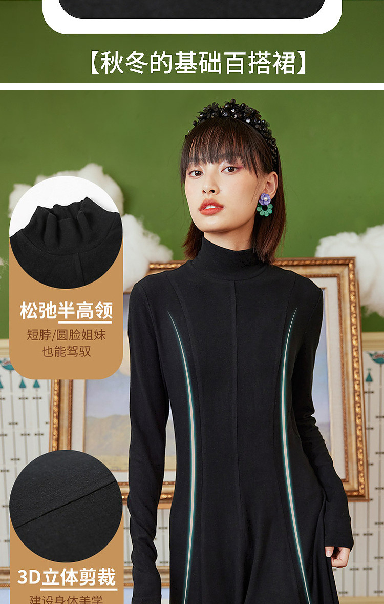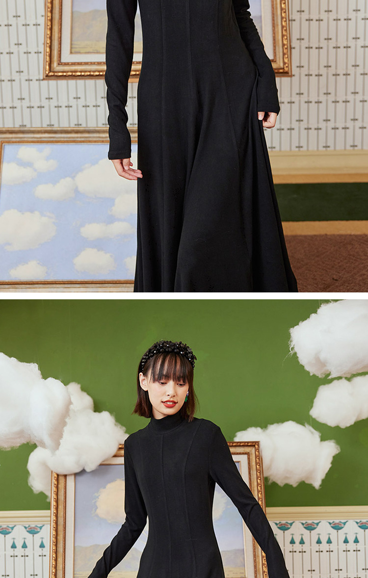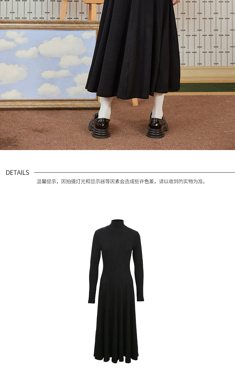 两三事 温软入冬 冬季新款简约高领厚款毛织连衣裙长裙