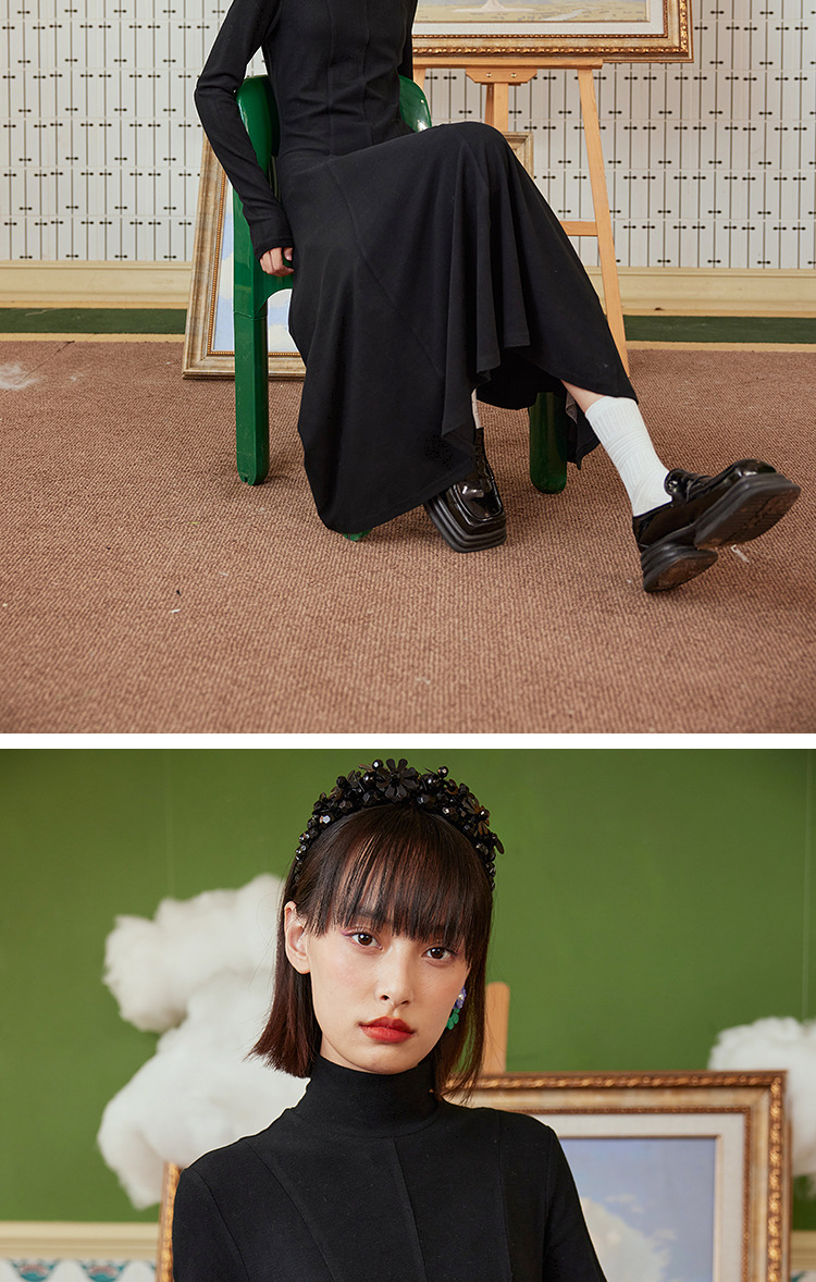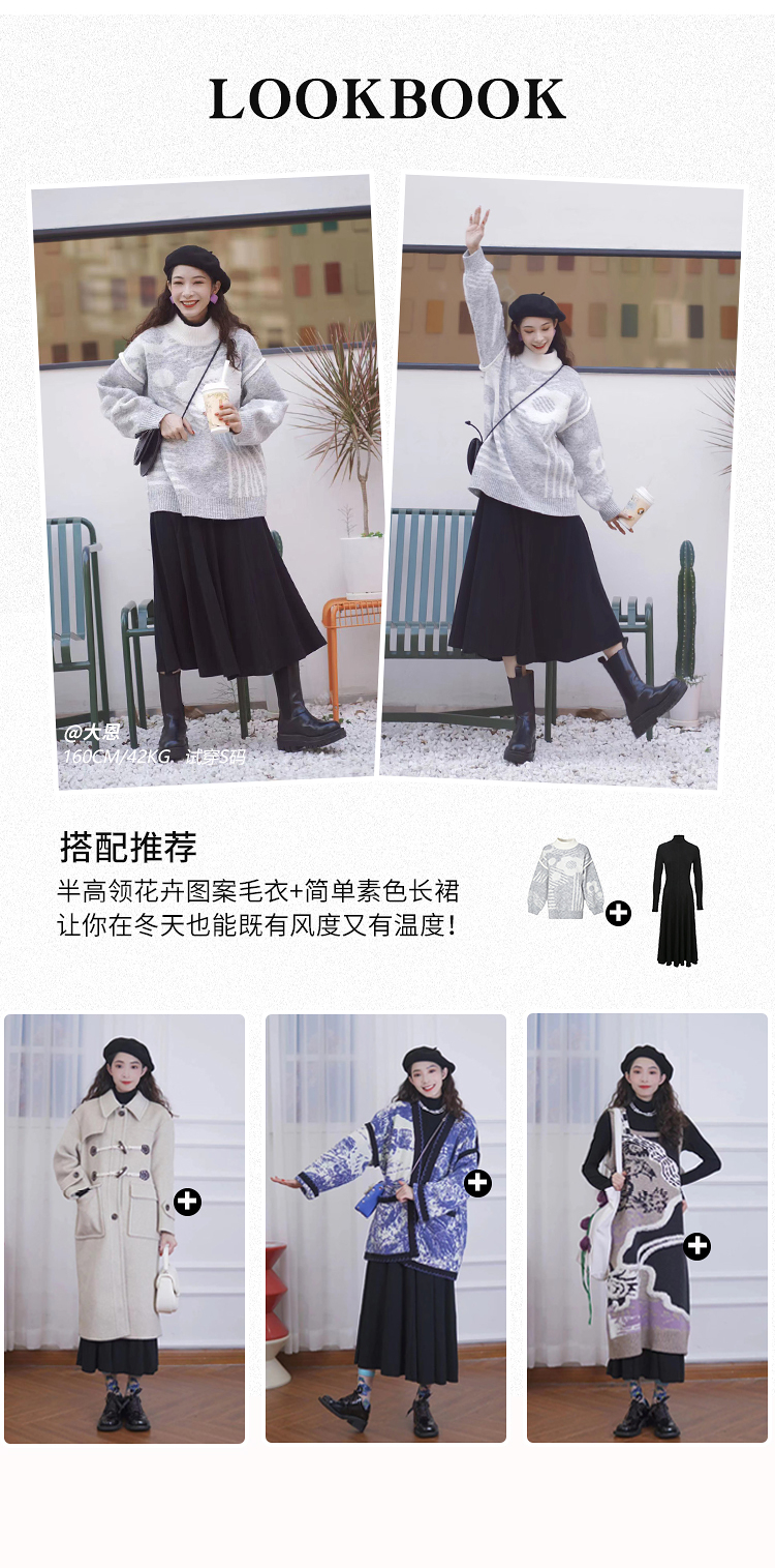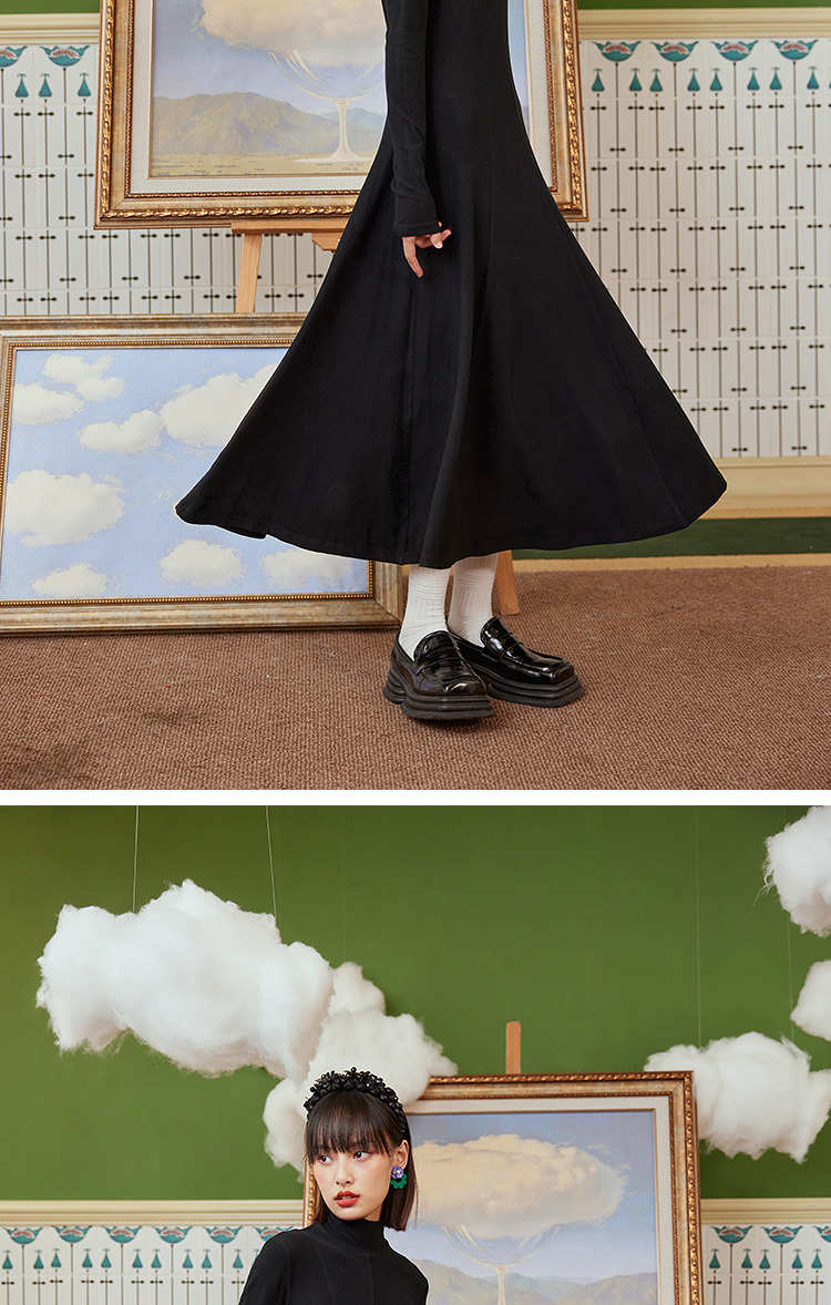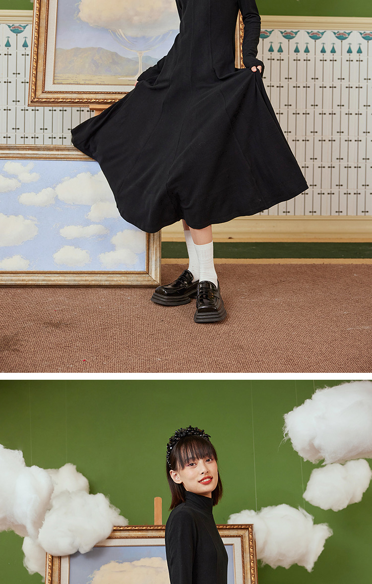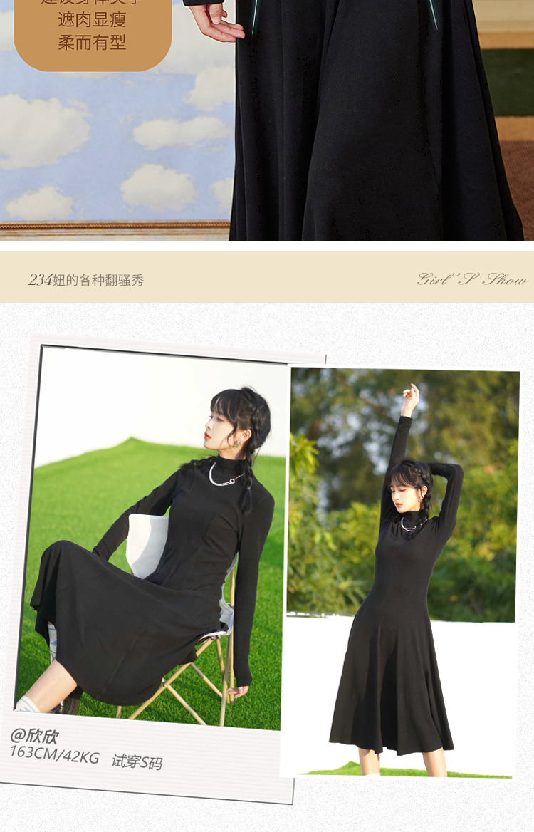 两三事 温软入冬 冬季新款简约高领厚款毛织连衣裙长裙
