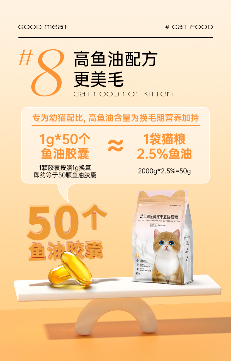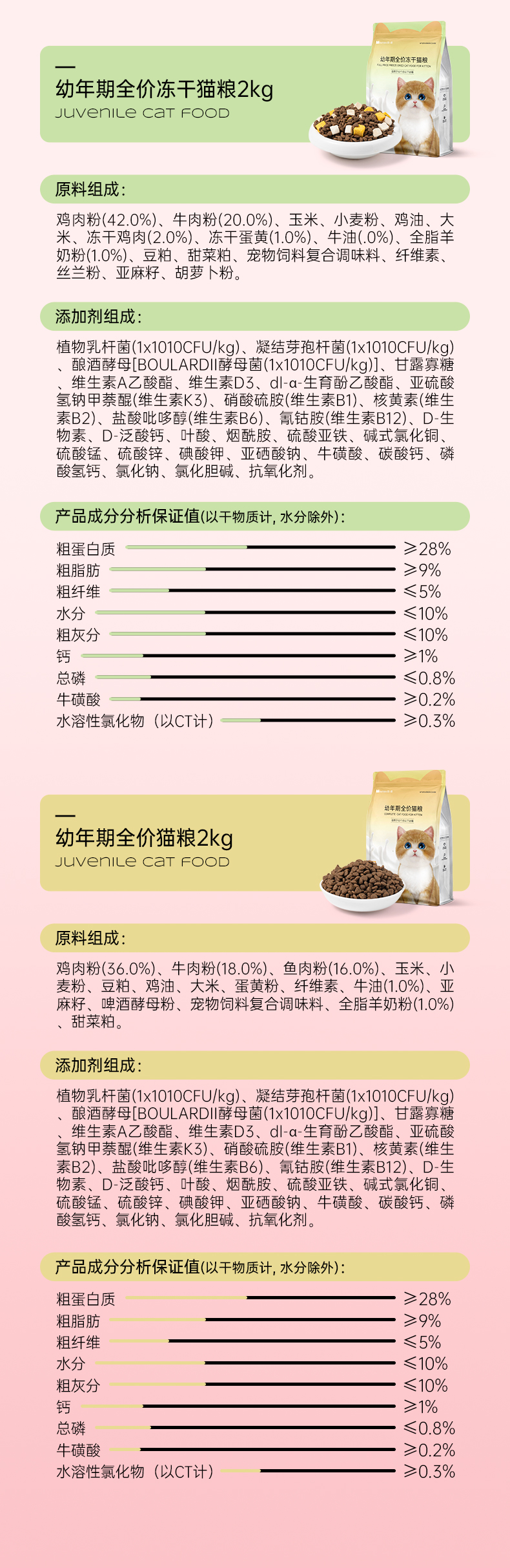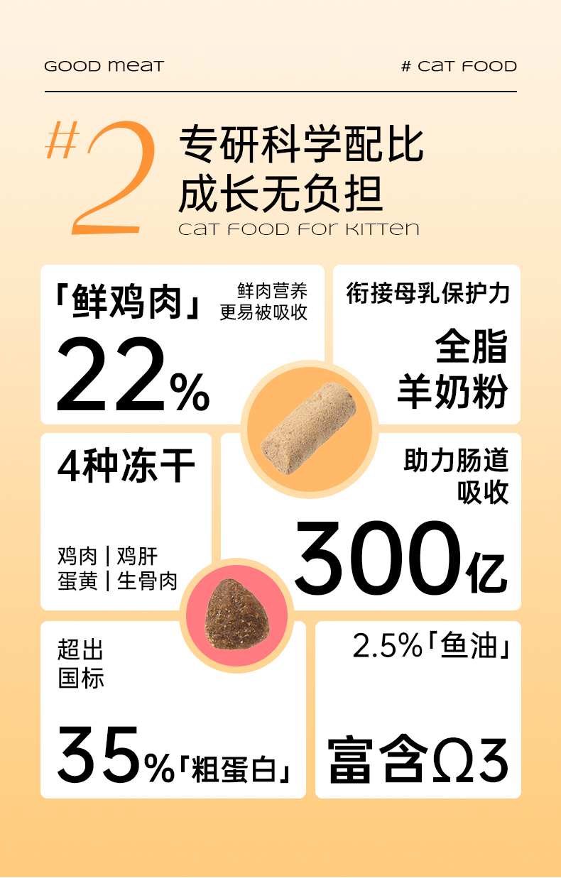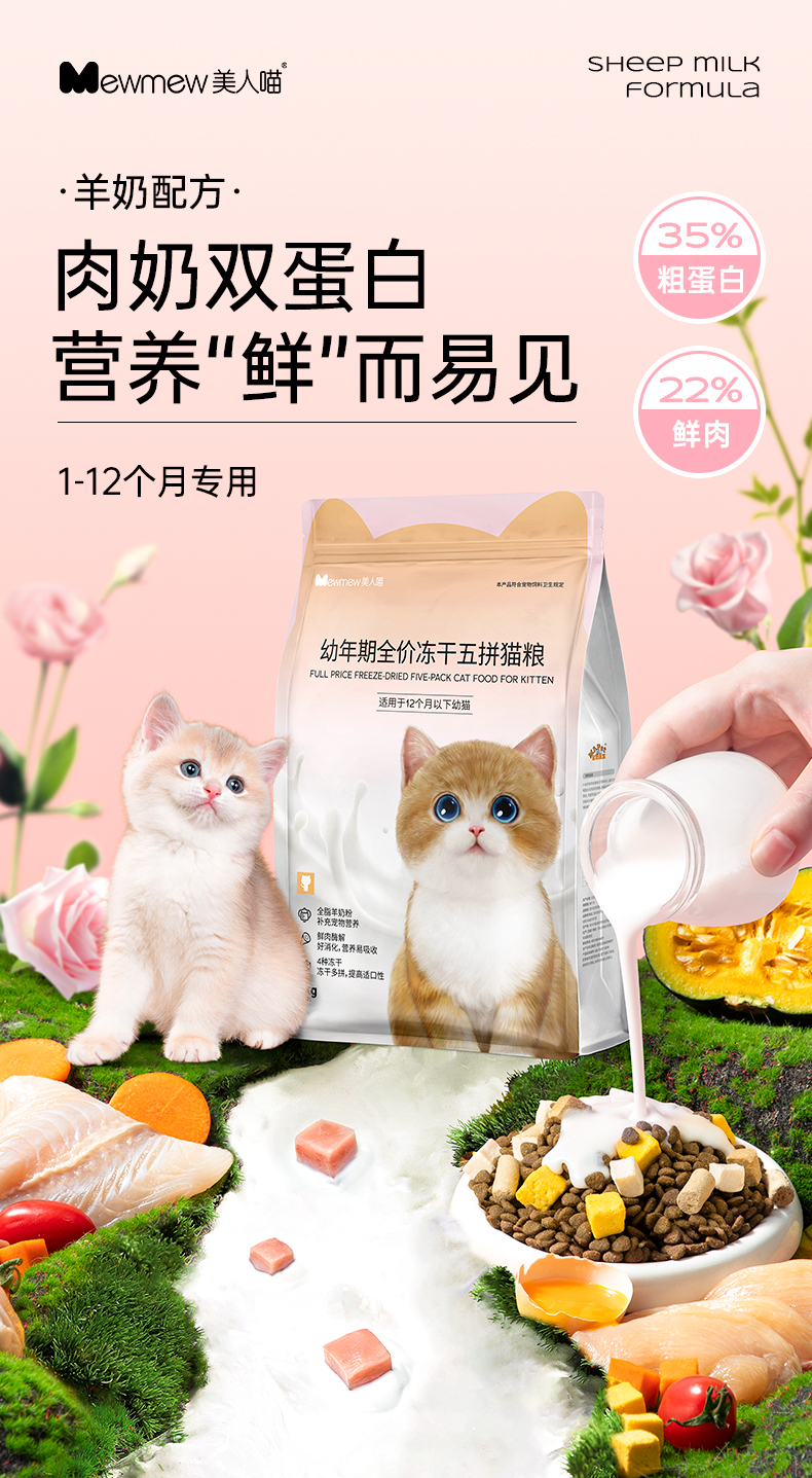 宠物先生 1-12月幼猫粮2kg 益生菌冻干五拼