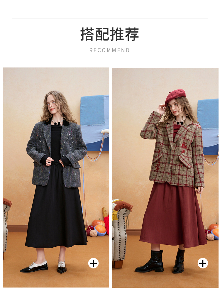 【暖冬内购】两三事 海上神探长 2024秋冬新款花朵毛巾绣拼色牛角扣毛呢外套女