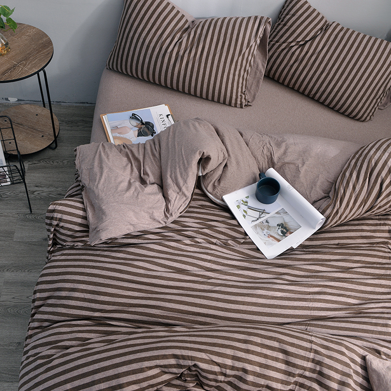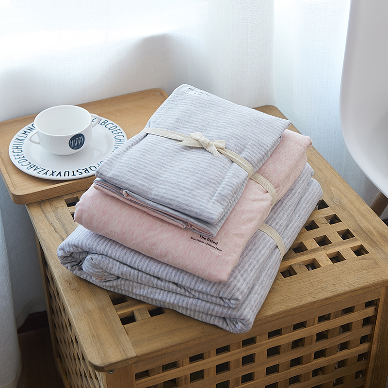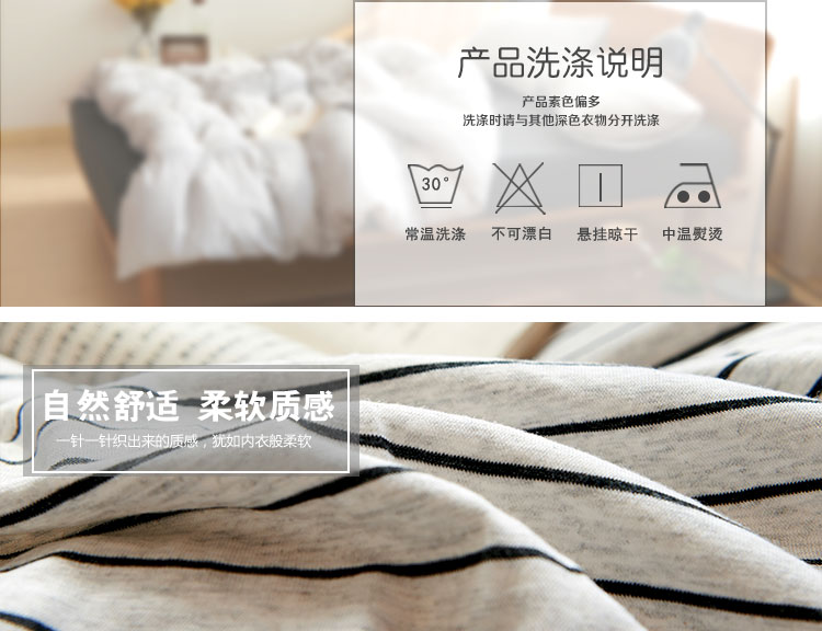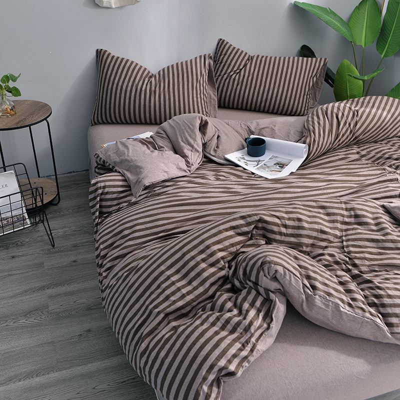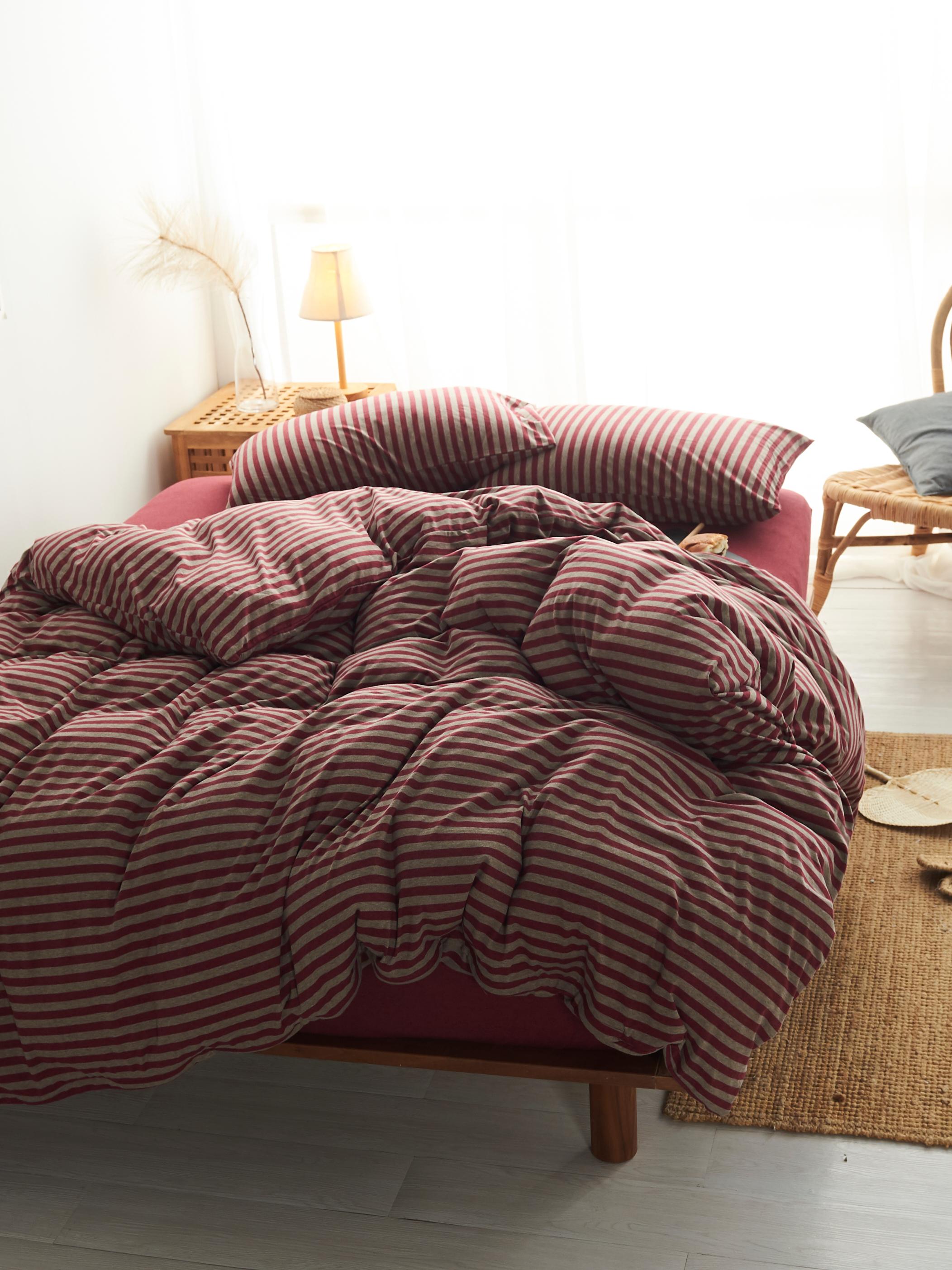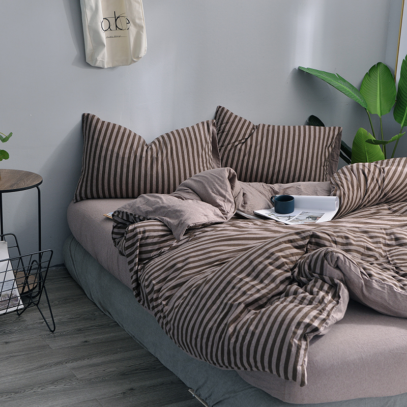 【2025年秋冬针织棉无印风条纹四件套】裸睡床品 A类标准 触感舒服