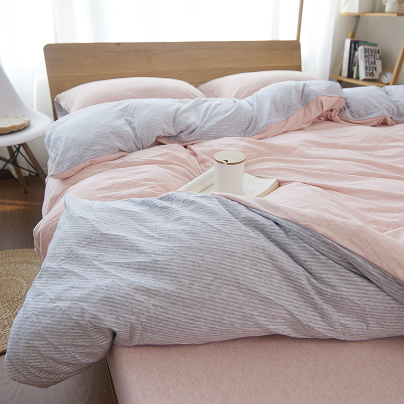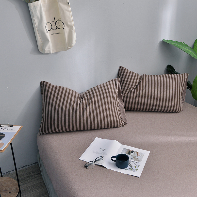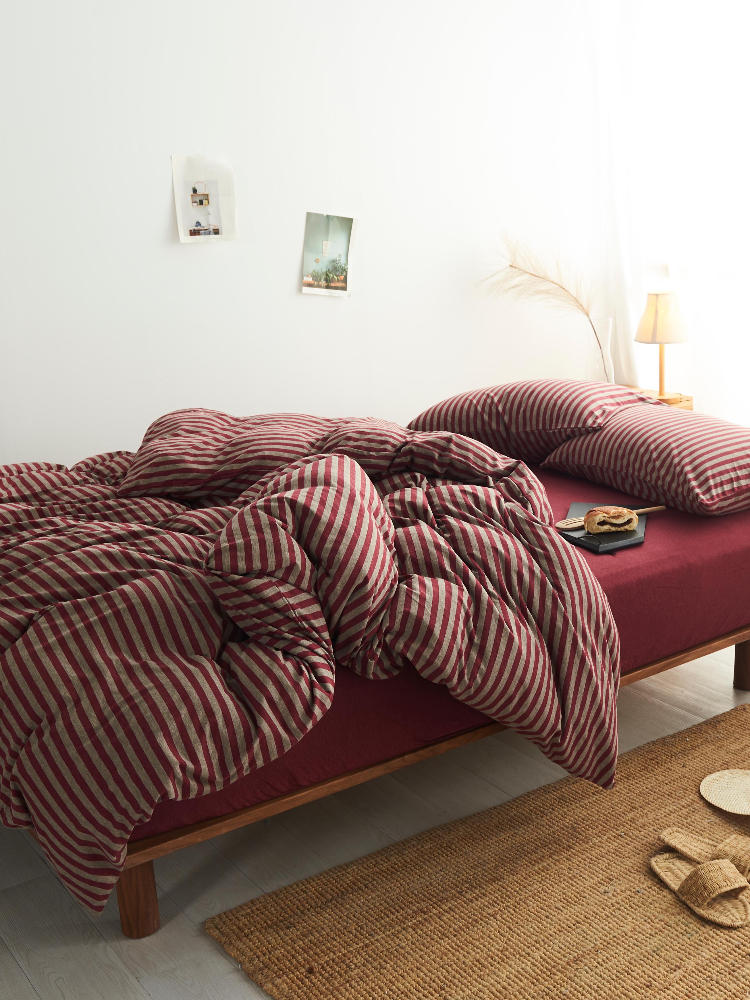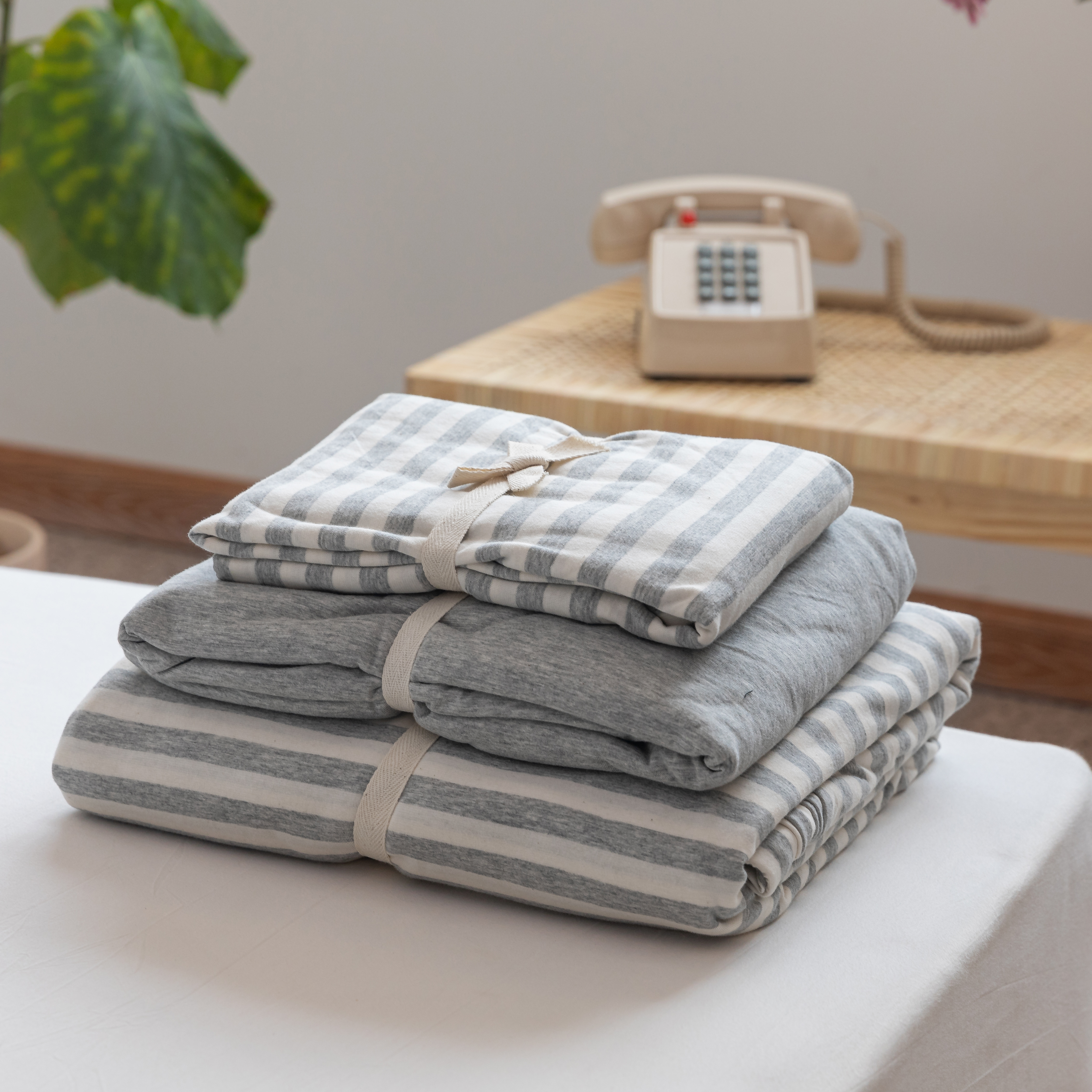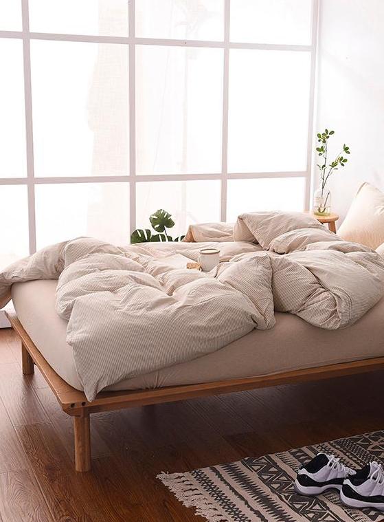 【2025年秋冬针织棉无印风条纹四件套】裸睡床品 A类标准 触感舒服