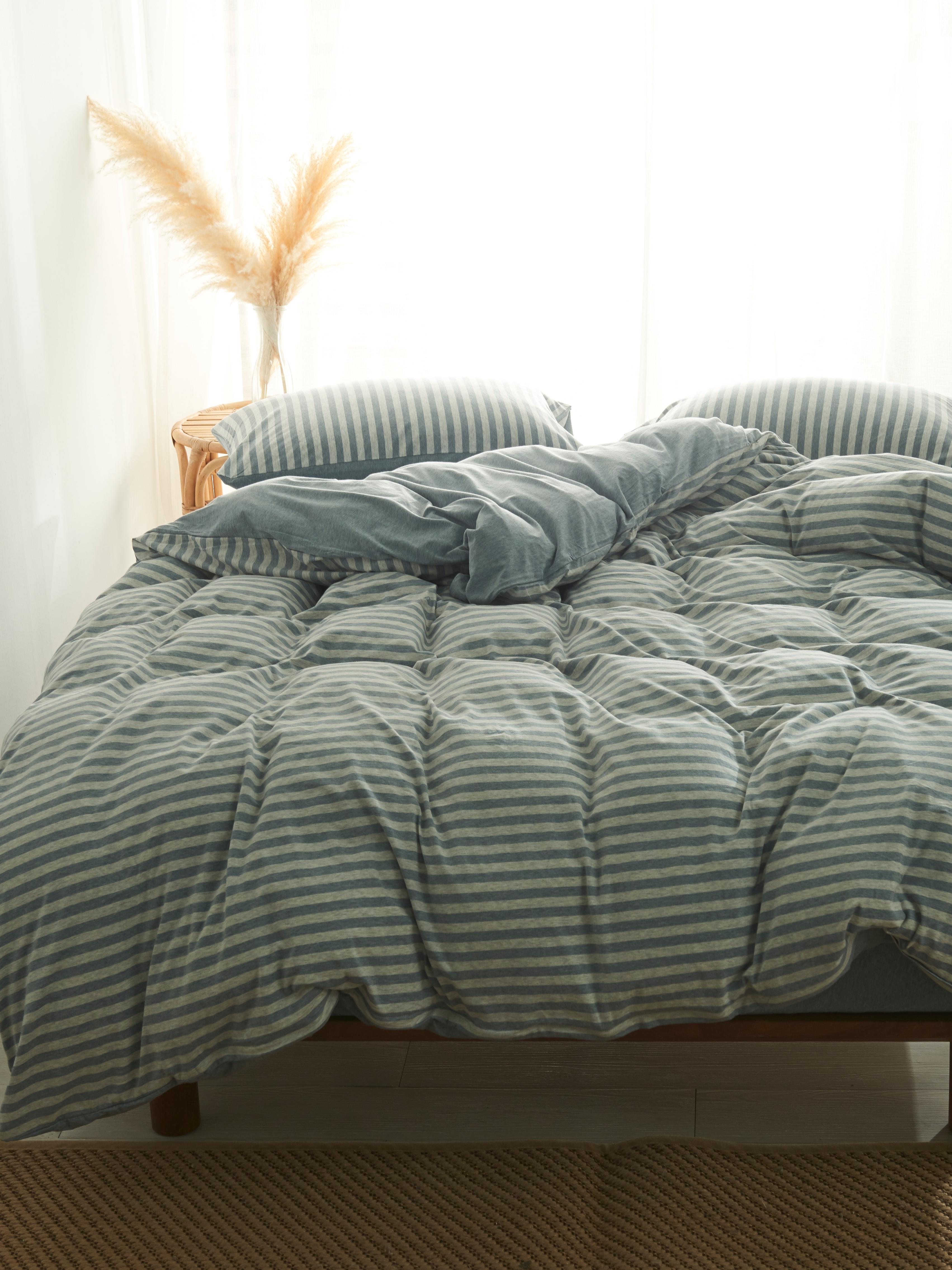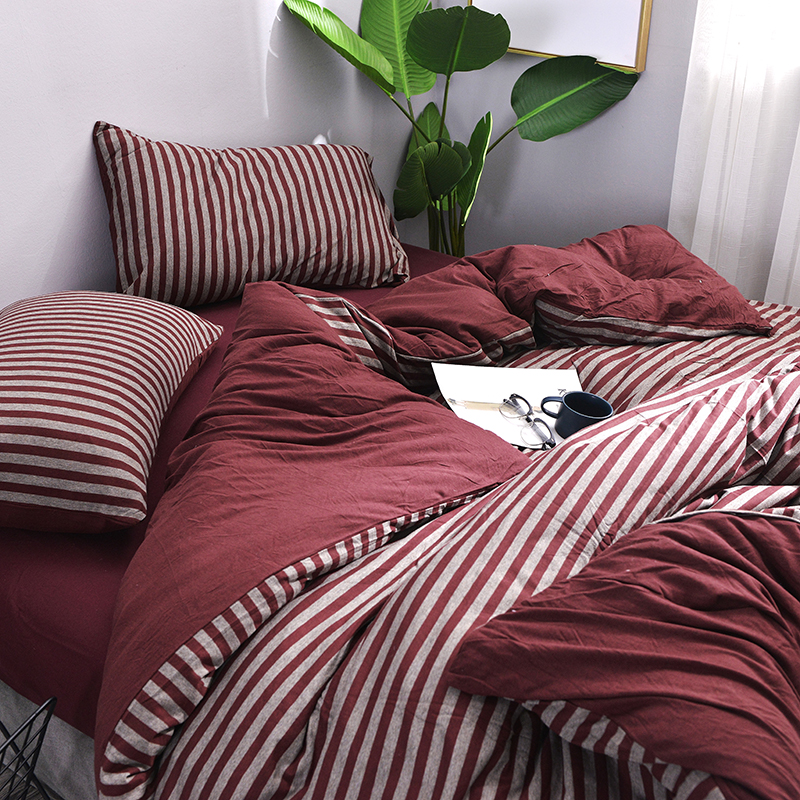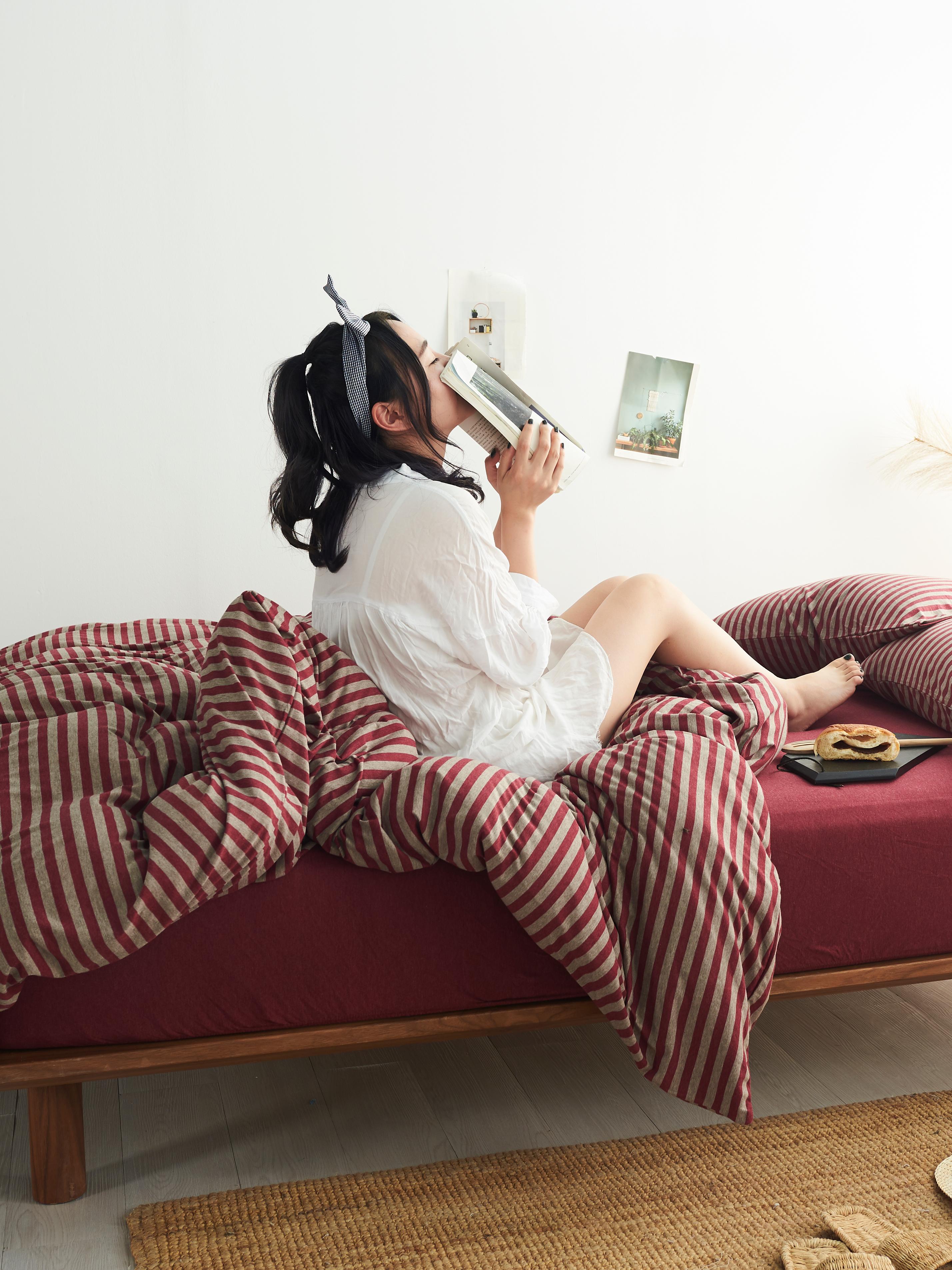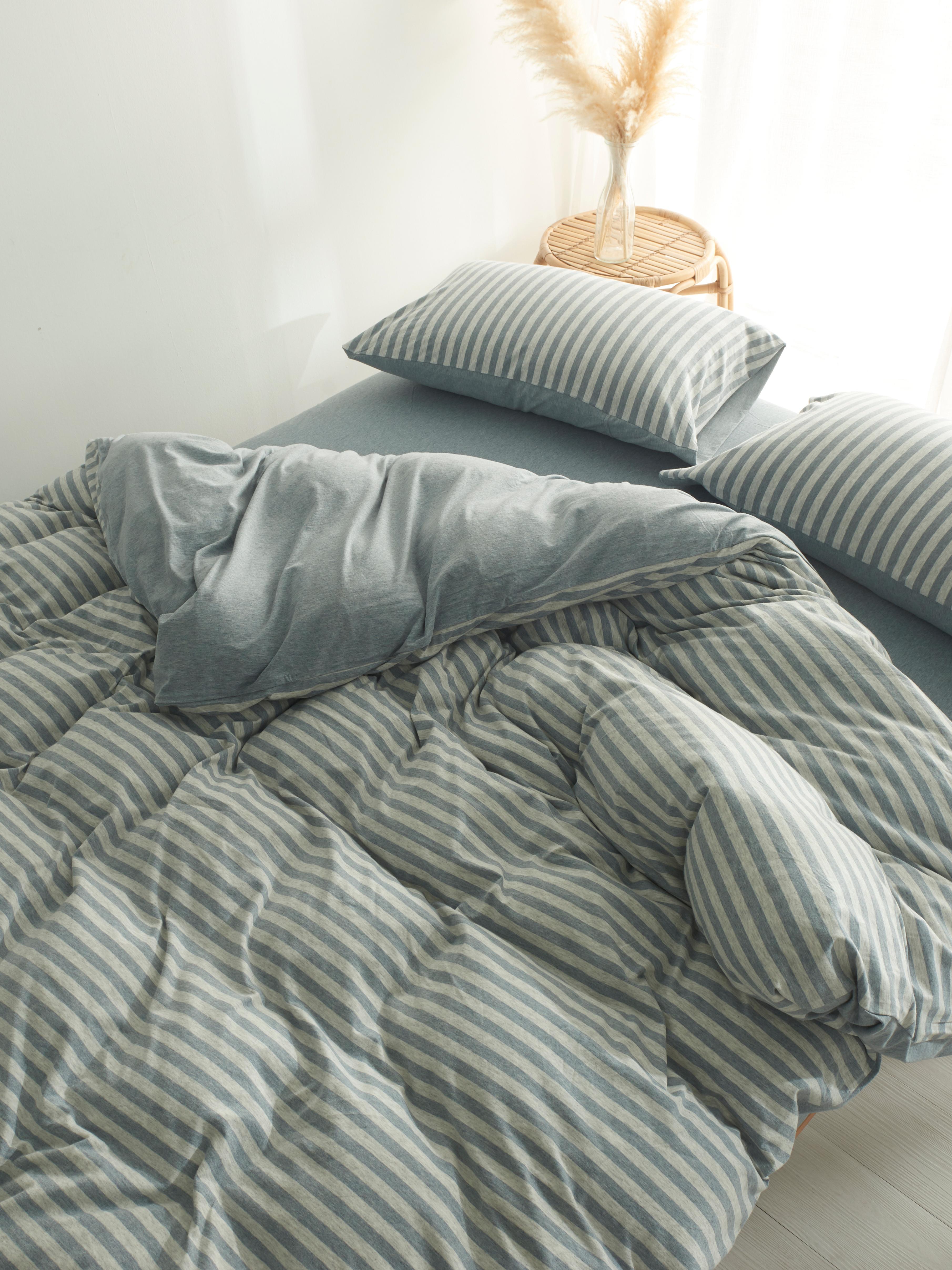【2025年秋冬针织棉无印风条纹四件套】裸睡床品 A类标准 触感舒服