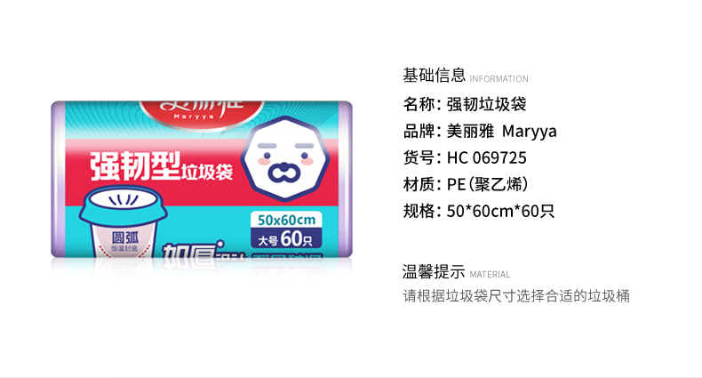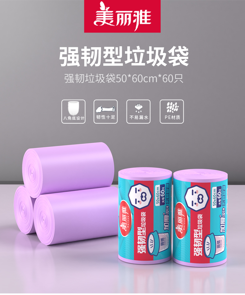 美丽雅强韧加厚垃圾袋大号60个入