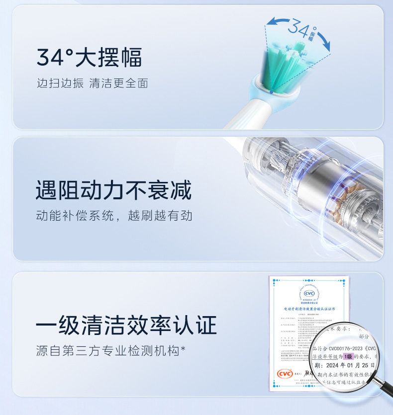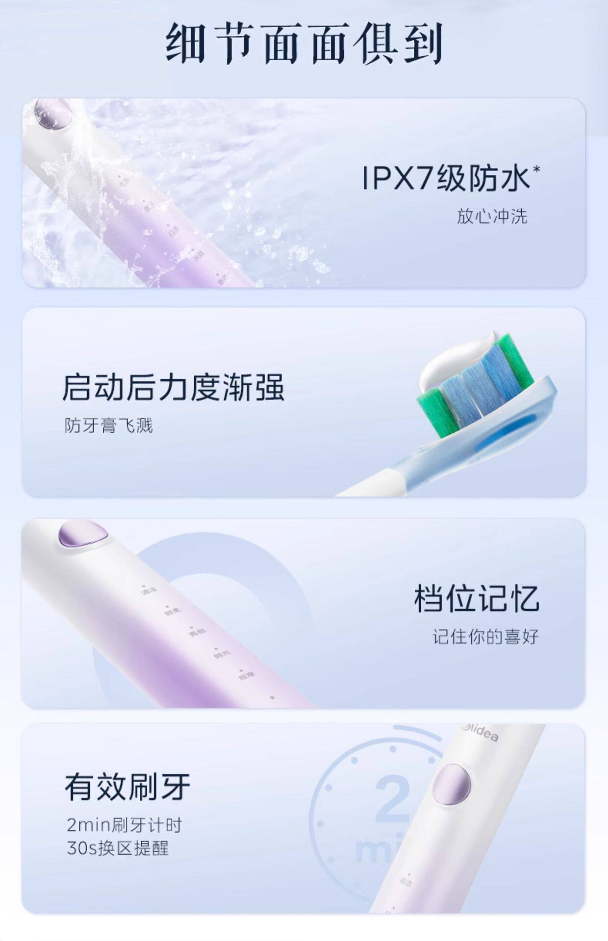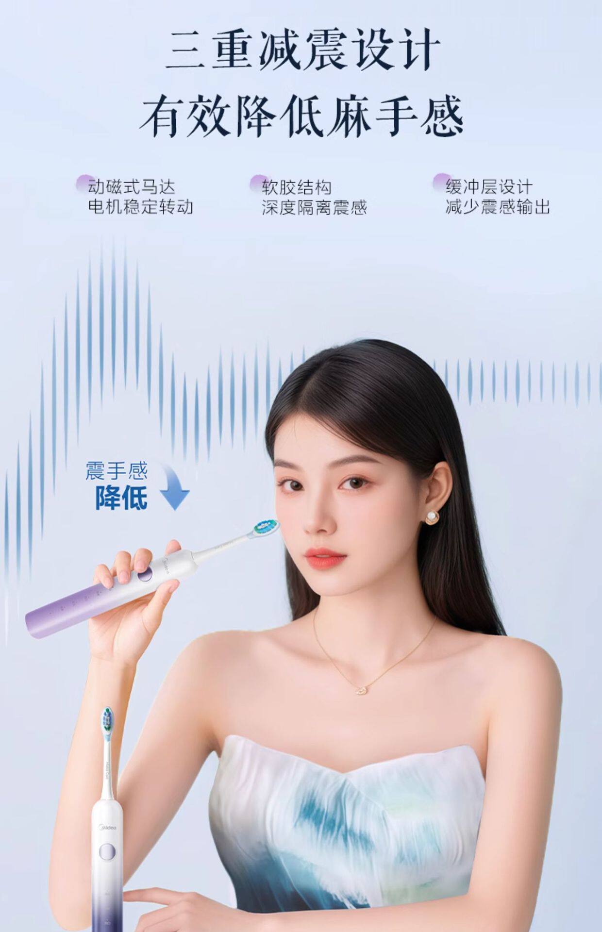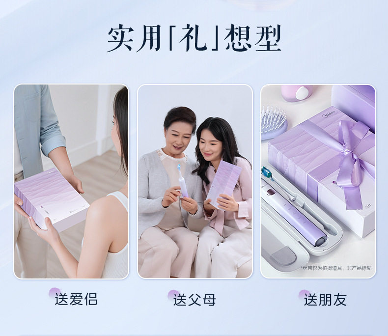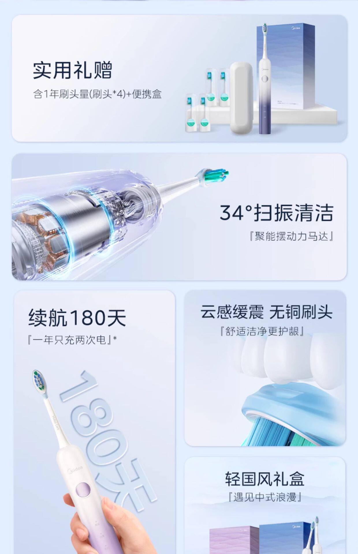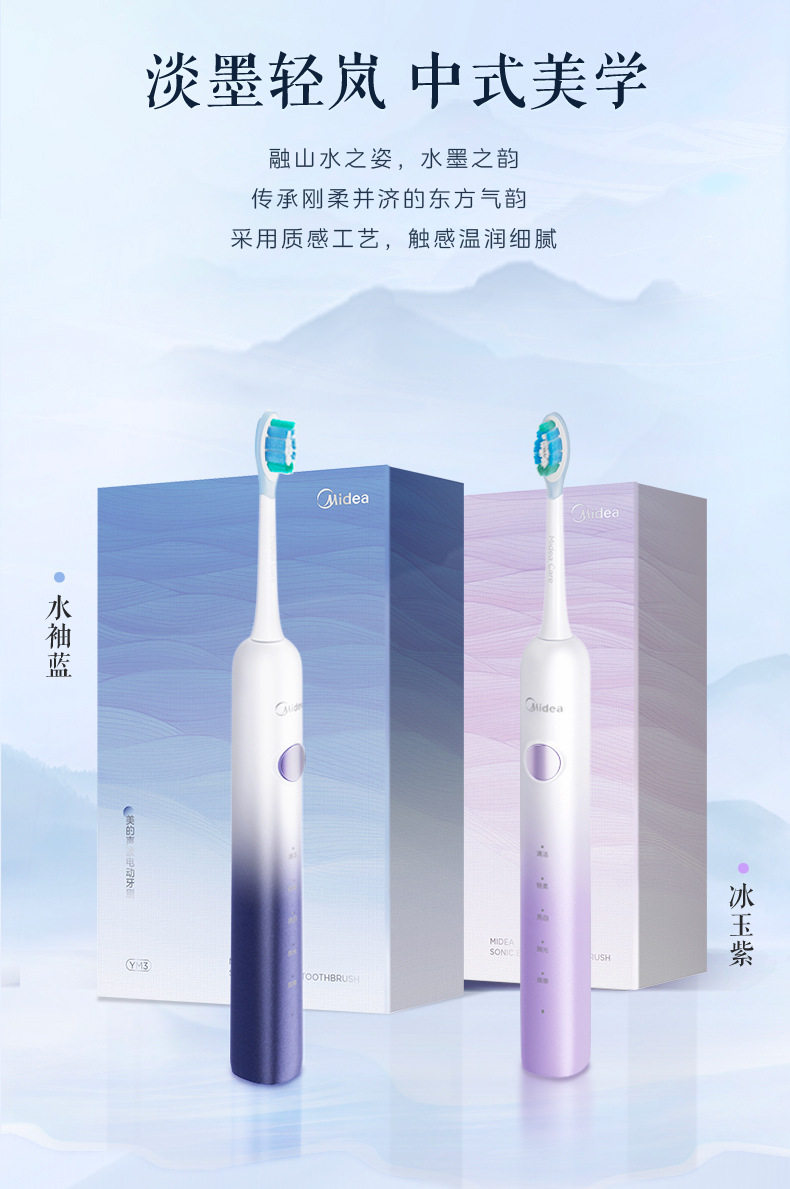 美的电动牙刷扫振一体成人家用男女自动声波式国风情侣礼盒装YM3