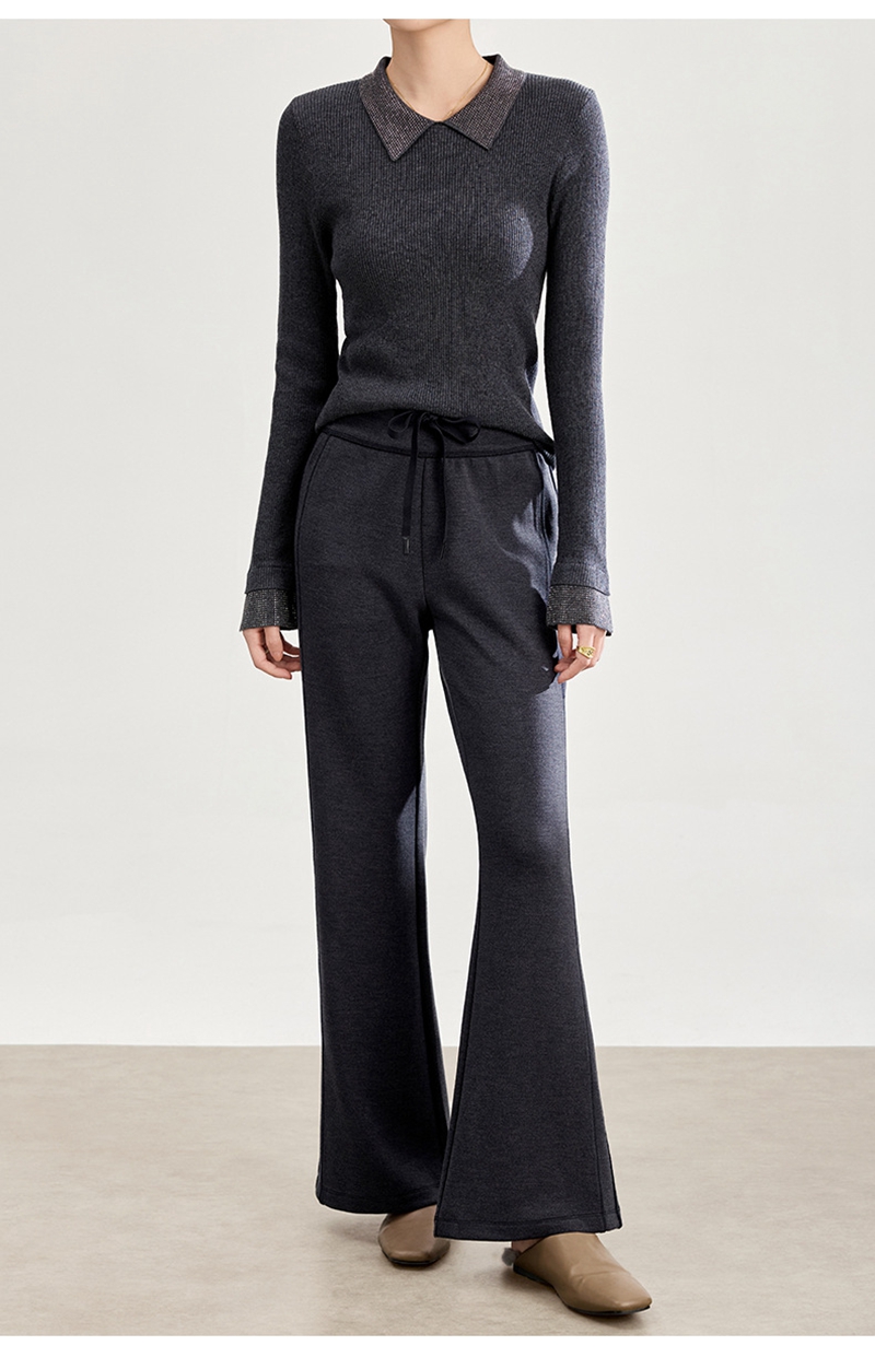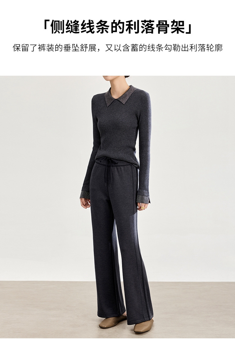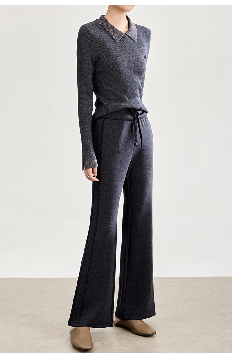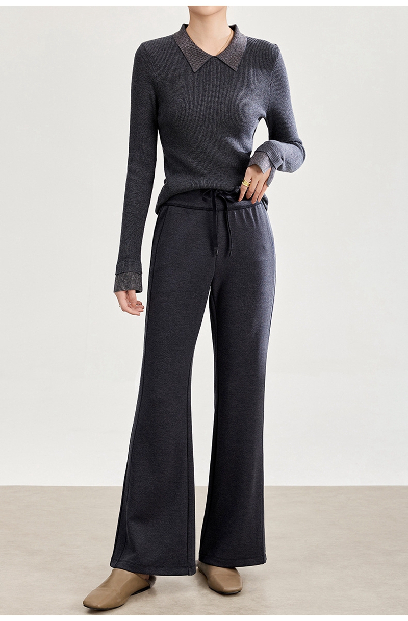2026春装时尚修身高腰松紧腰抽绳休闲喇叭裤