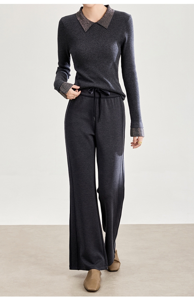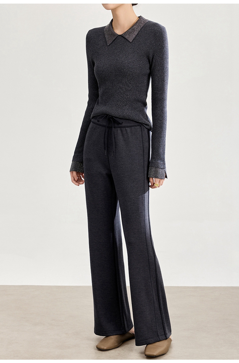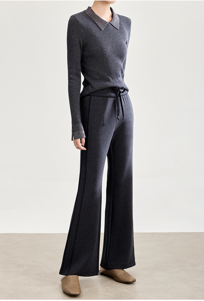 2026春装时尚修身高腰松紧腰抽绳休闲喇叭裤
