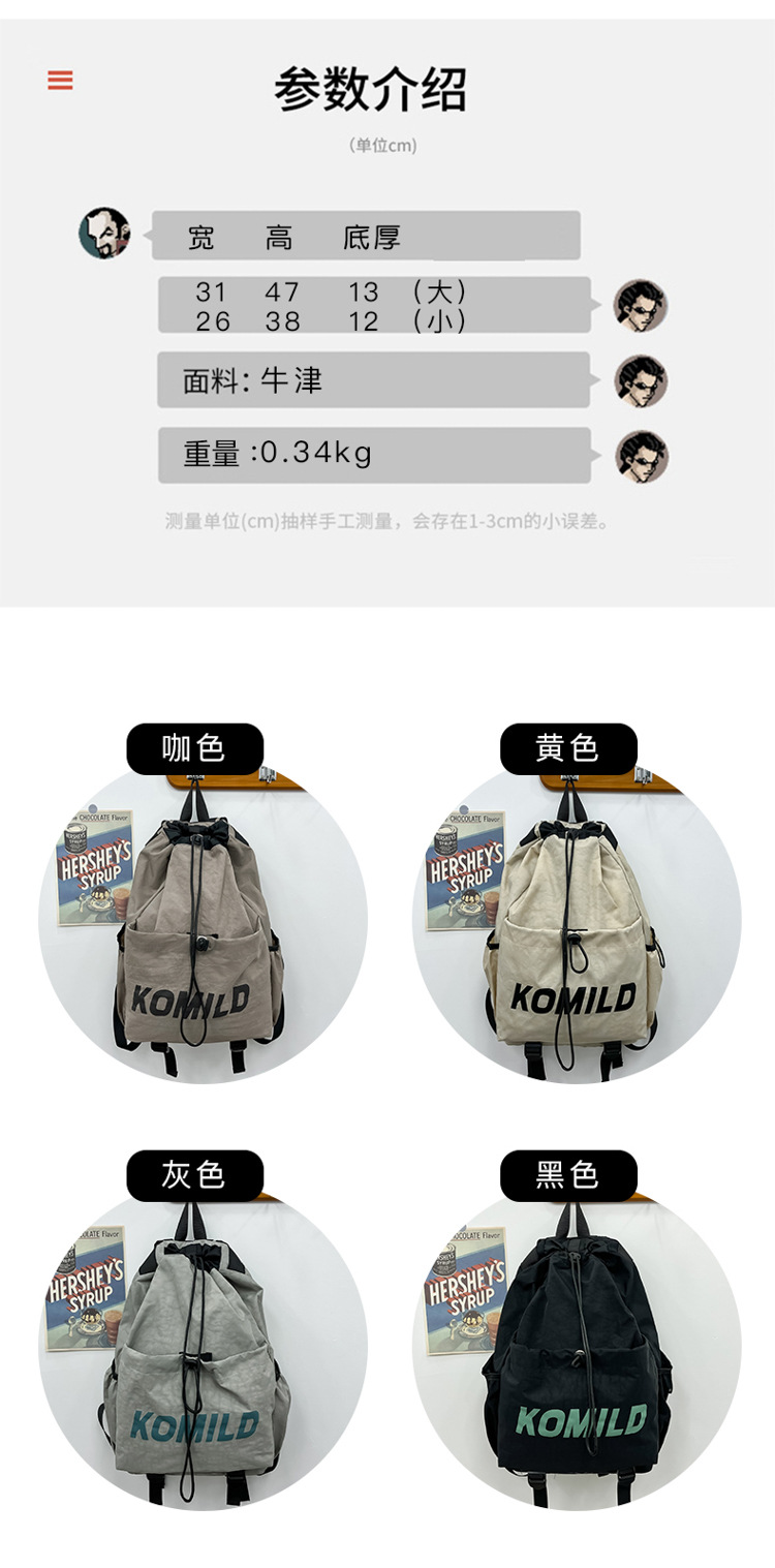 【户外运动轻便抽绳双肩包】男女款束口包登山包 大学生上课包补课包
