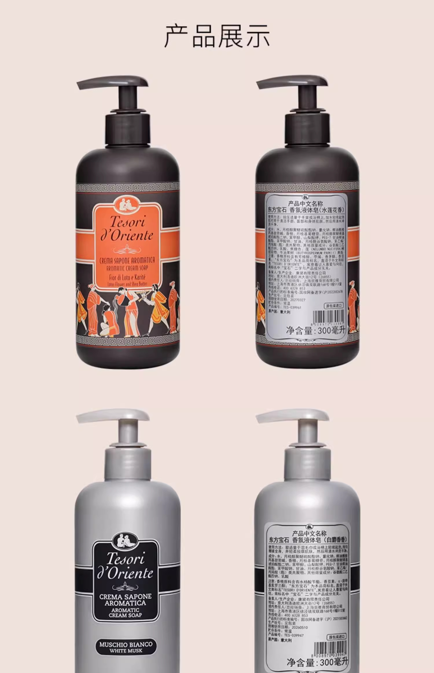 【中欧班列】意大利原装进口东方宝石香氛液体皂沐浴清洁家用洗手液 300ml ON