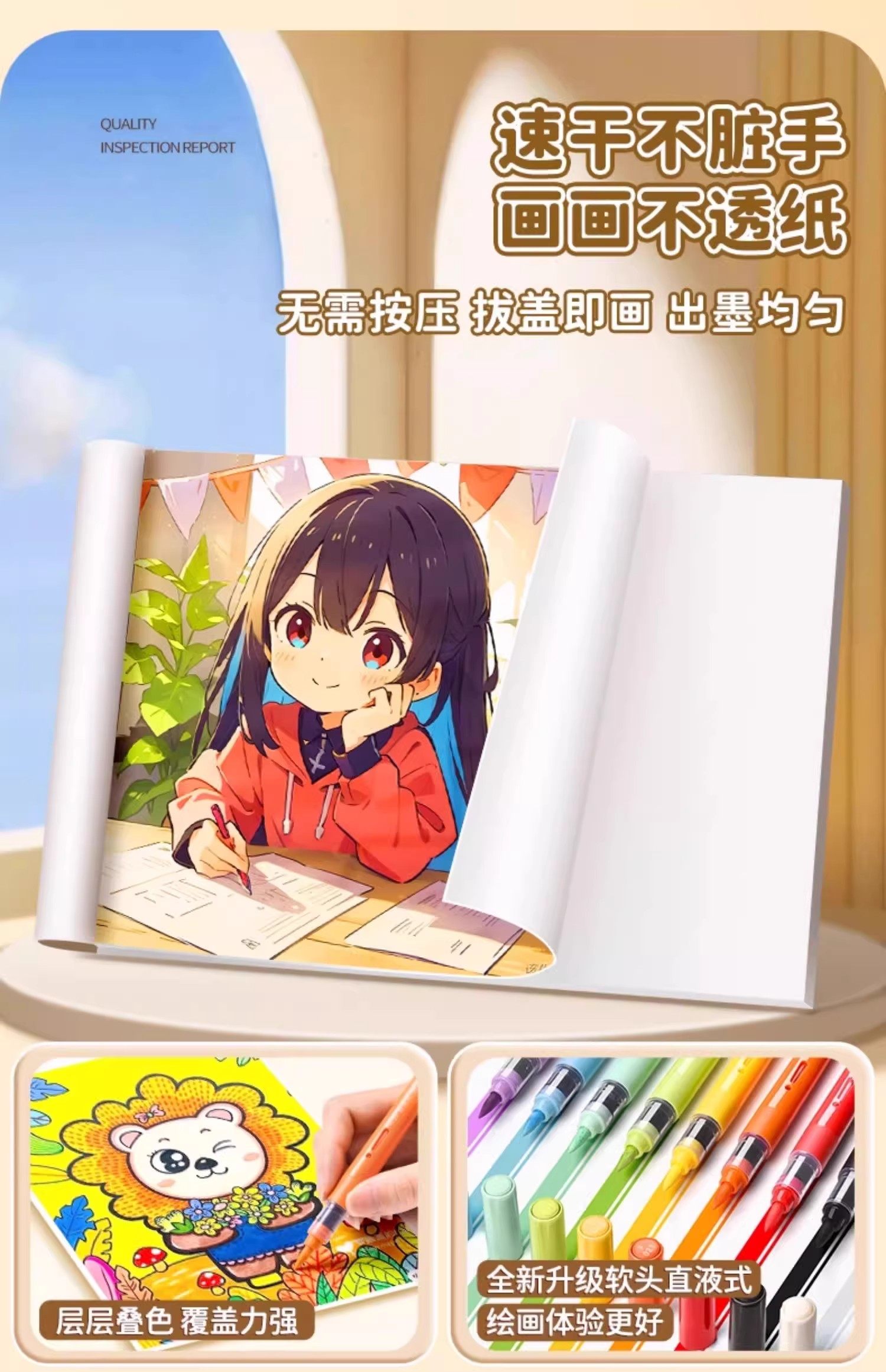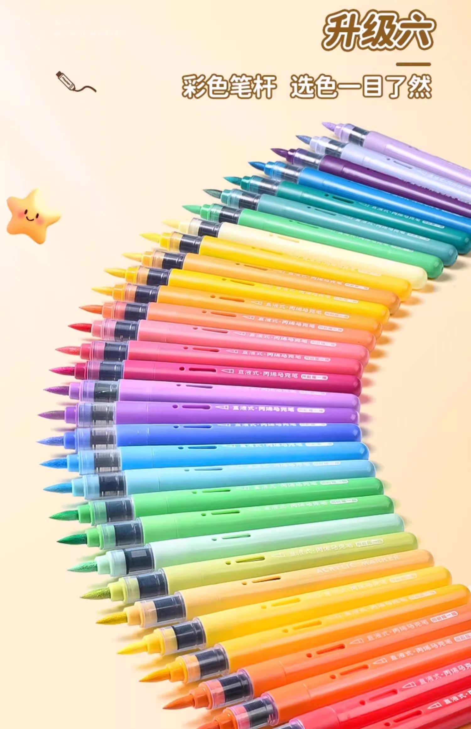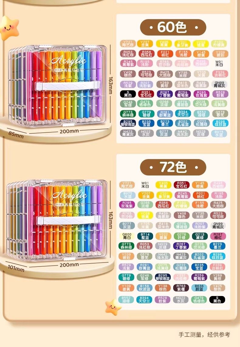 【速干不脏手❗画画不透纸】直液式小学生可叠色水彩笔美术生专用彩色笔儿童软头丙烯马克笔。rg