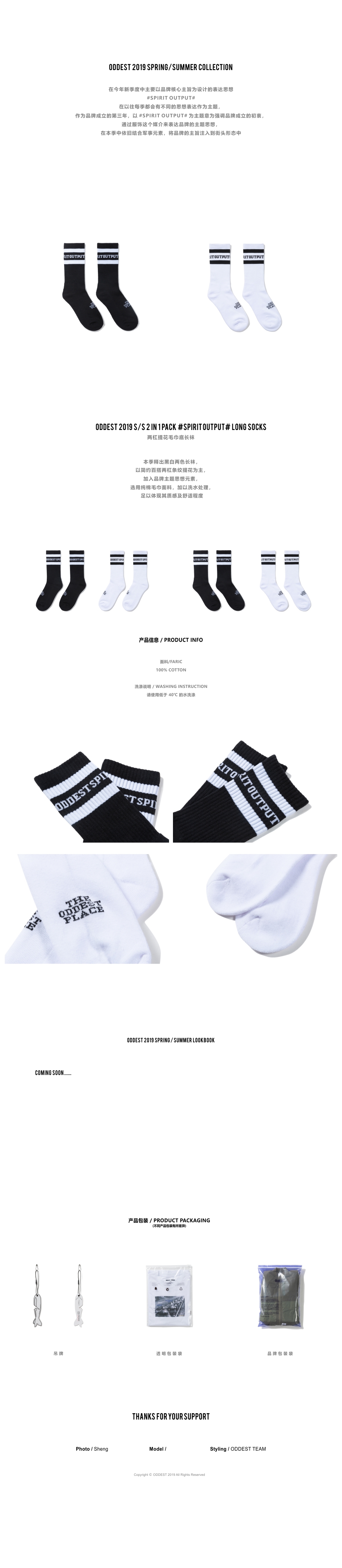 OURDAILYDOSE 原创潮牌 黑白2件套 基础两杠条纹提花毛巾底长袜
