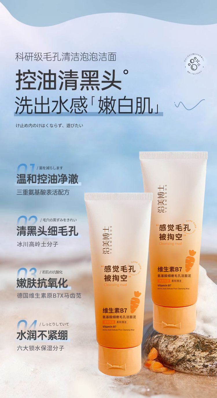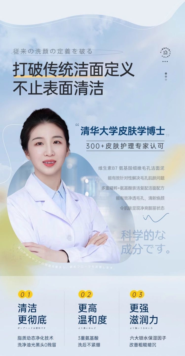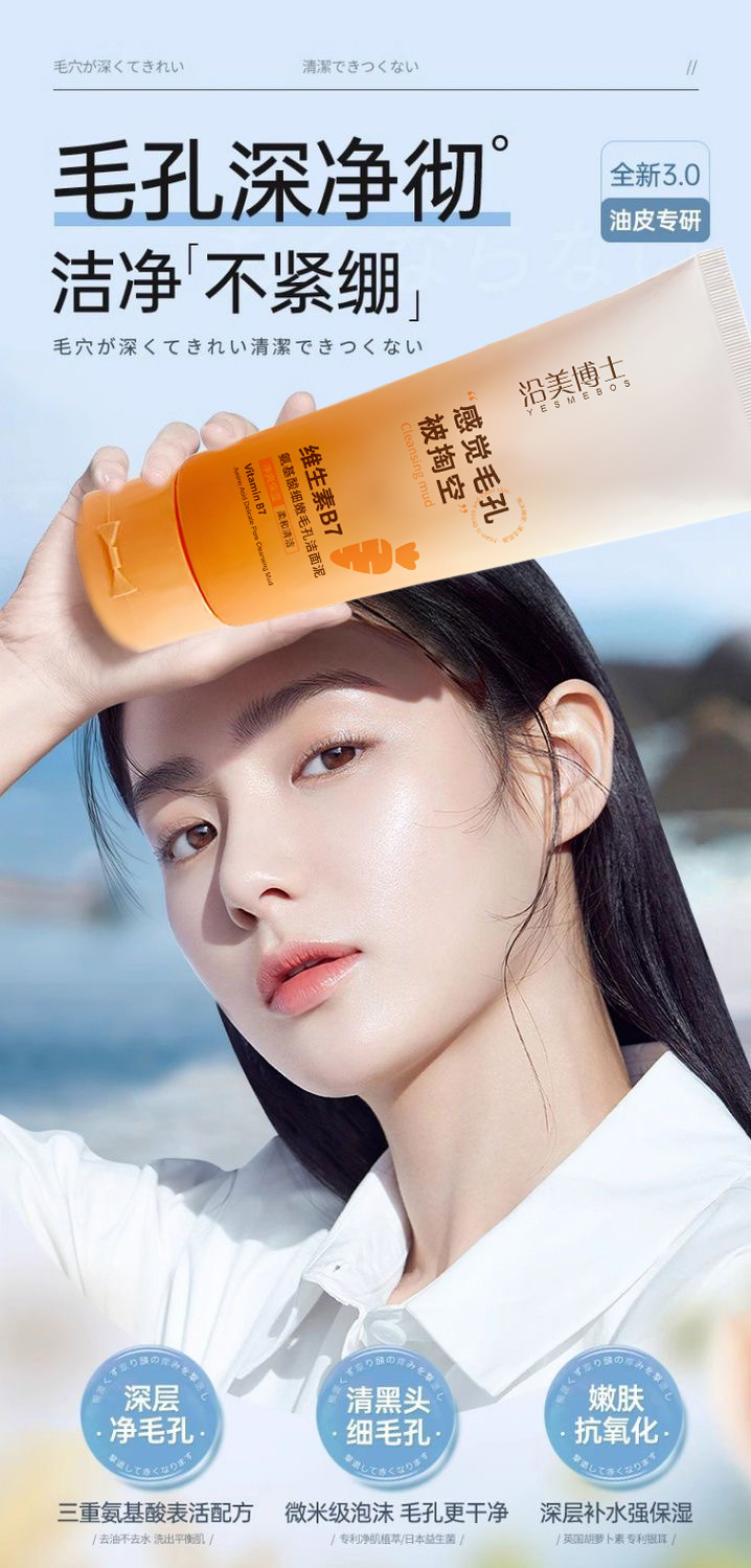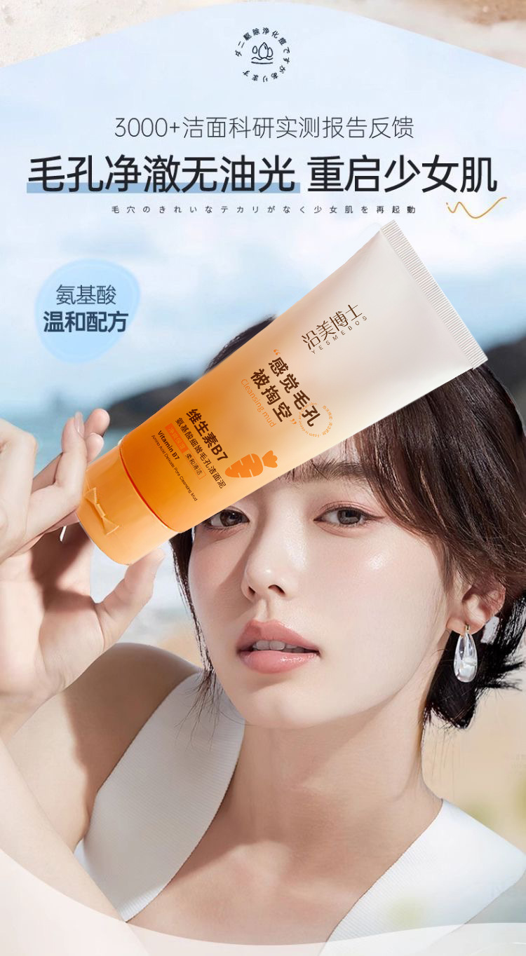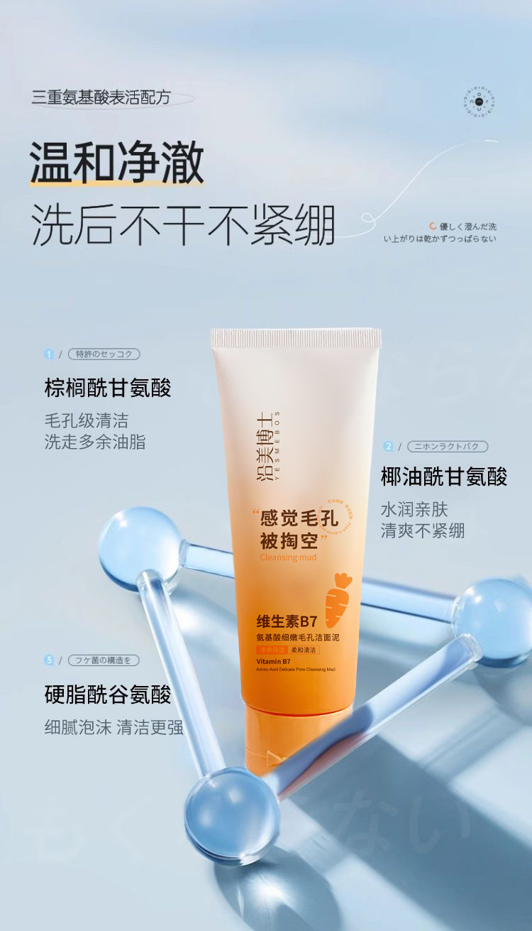 「拍1发3!9.9到手3支」沿美博士维生素洗面奶B7氨基酸细嫩毛孔洁面乳清泥不紧绷